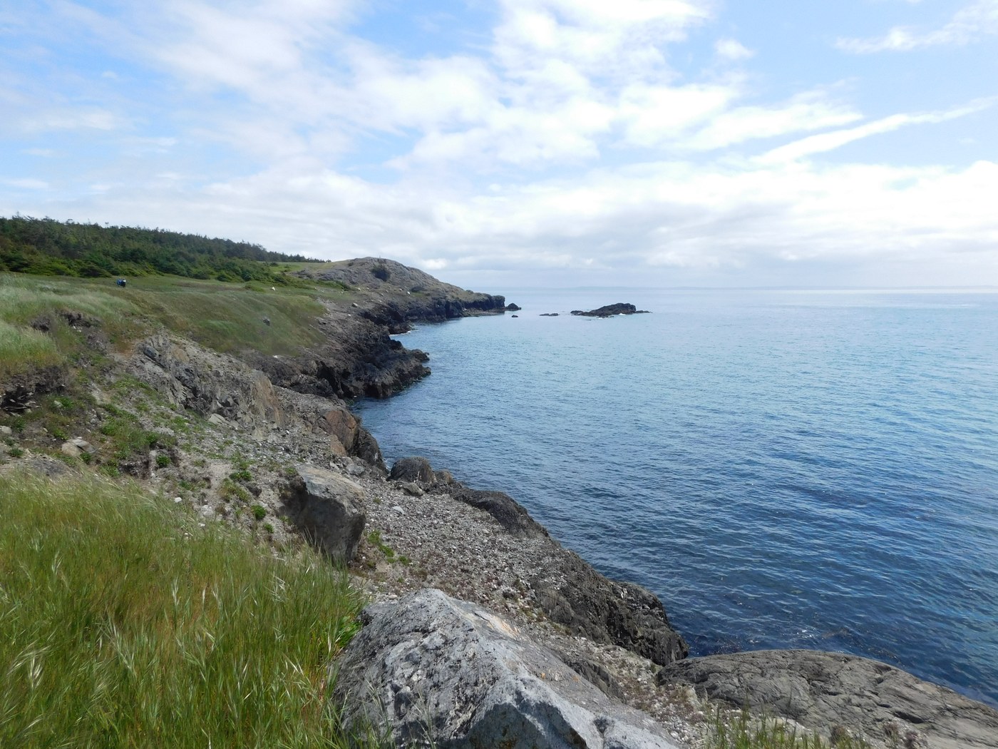 We wandered along the headlands and cliffs, ( the longest public beach access on Lopez) along the bluff trail which hugs the cliffs. The white moss gardens, grassy meadows, rocks, and contorted trees are all beautiful. The area is large enough, and doesn't get a lot of hikers, so any other people are usually seen from a distance. a few small patches of cactus almost ready to bloom....
