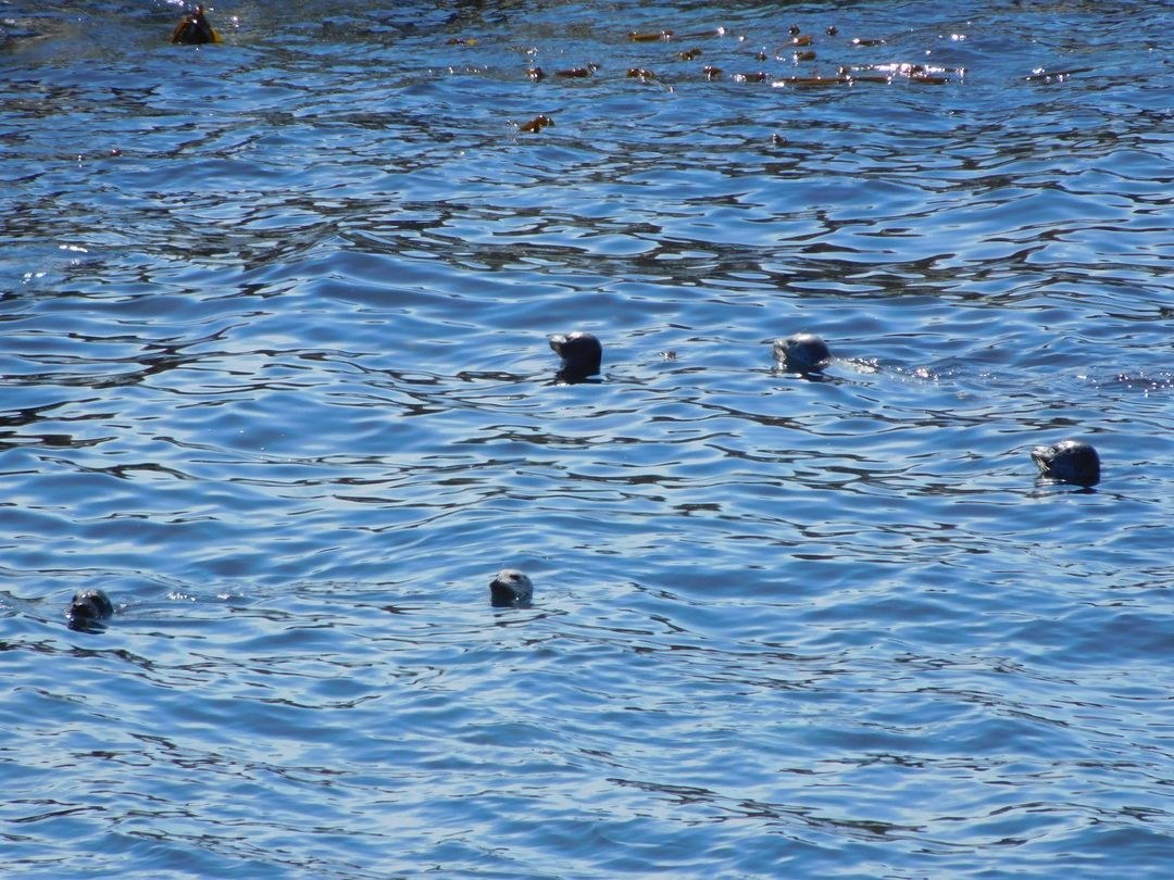 seals play along the shoreline... there is a warning light on the rocks at the point...... and small rocky beaches...