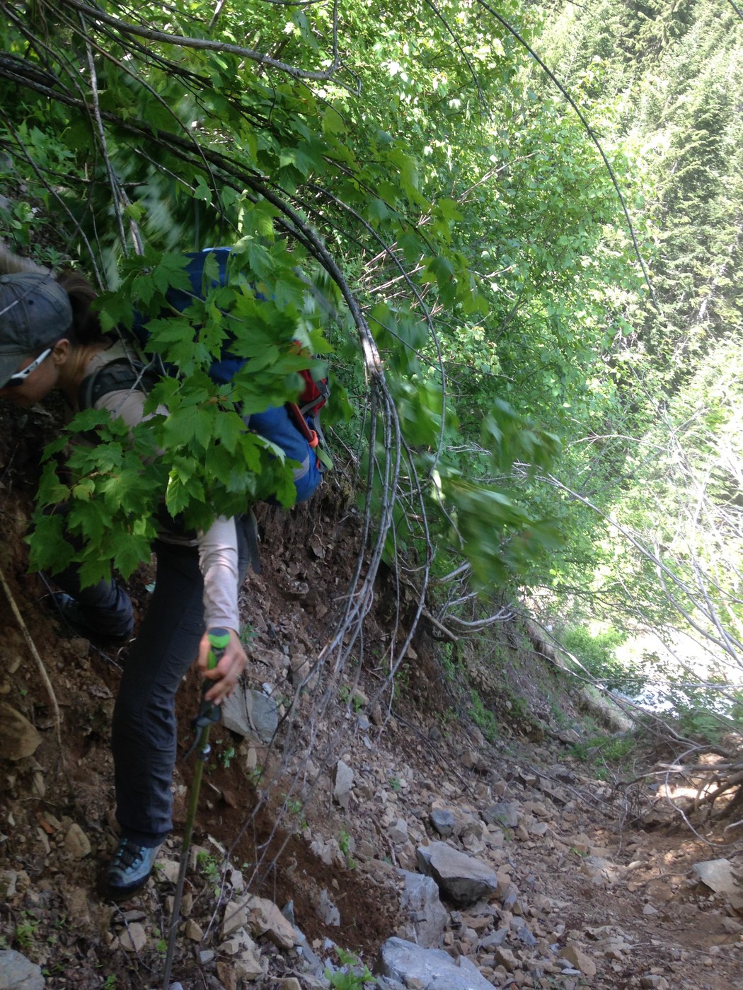Hiked the Chancellor Creek trail to the Mill Creek junction and then took the Mill Creek "trail" into the Azurite Mine area. I climbed Mt. Ballard as well. The info posted at the start of the Chancellor Creek trail as to what mileage the trail is impassable is incorrect, also, unless you are trying to ride a unicycle while wearing clown shoes and juggling, it is definitely passable. The Mill Creek trail is definitely in the hierarchy of the worst trails I have ever schwacked and for context yes I have done the Bachelor Creek trail twice and the border section of the Chilliwack to name a couple. Trail this bad is immeasurable in distance, that being said, it is there, the tread exists. The burned section at the start is uncomfortable, scratchy and hot with a noticeable steepness to the terrain. As it rounds the corner and the aspect changes the foliage becomes more lush and at times you are crawling on all fours to navigate vine maple and then suddenly you will pop into wide open trail in a forest. When it finally merges with the Cady Pass trail it just becomes a road bed with washouts until the mine site where it starts to degrade again towards Azurite Pass. Cool stuff back there and the surrounding peaks are impressive. Expect green belays on trail and the opportunity for consequential missteps, do not attempt without some form of GPS and do keep looking for sawed branches and trees when you think you are totally off trail, finally, when you think you have lost all hope and the trail will just disappear into oblivion know that it does go through if you just schwack hard enough.