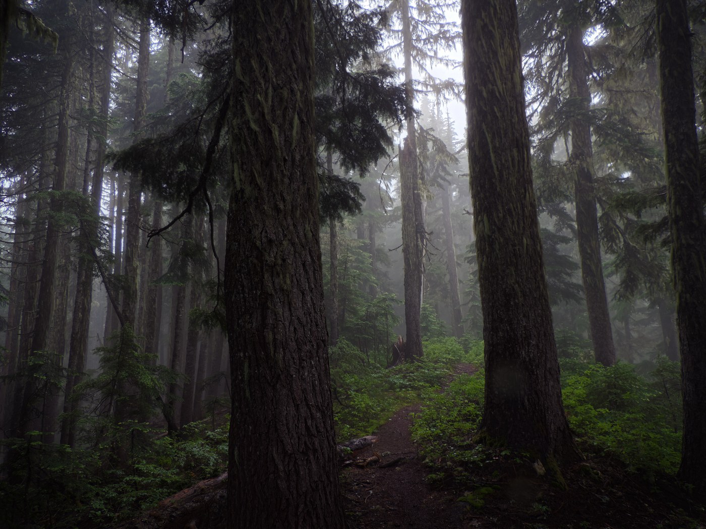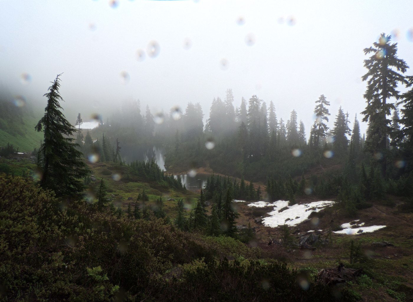 Weather was not the best for this sort of hike, but I knew that heading in. Slept in a bit and didn't get to the trailhead until 10:30a which is EXTREMELY late for me, but this did not prove tobe an issue at all. Right where the pavement ends on Beckler, the service road is a long single-lane switchback with very few turnouts, it is in pretty good shape (even looks like some fairly recent work done on the lower half) but painful if you encounter vehicles approaching the opposite direction. Low cloud/fog in the forest has it's charm, but it also totally blocked the vistas which are the draw of this trail. There were several blow-downs, none impassable for the average hiker but anticipate a little "gymnastics". I went all the way to Joan Lake, wandered up and down for a few mins looking for the route to Captain's Point, and decided since weather was not the best and I had work tomorrow morning to give up the hunt after not being able to find it after 20 or so mins. Very disappointed. Then headed back up to the summit of Scorpion Mountain for lunch, enjoying the view of the wall/ceiling of white cloud and wondering why I didn't just eat under the shelter of trees instead. Was extremely grateful I brought my Gortex pants; there was plenty knee-high grass and brush to make them pretty essential if you got a pair yourself, just remember to pull them down over your boots so the water doesn't just run down your pant legs and into your boots XD Was also grateful to have brought along extra socks and liners... 8.25mi, 3000ft of gain round-trip total, 3.5hrs moving, 5hrs elapsed.