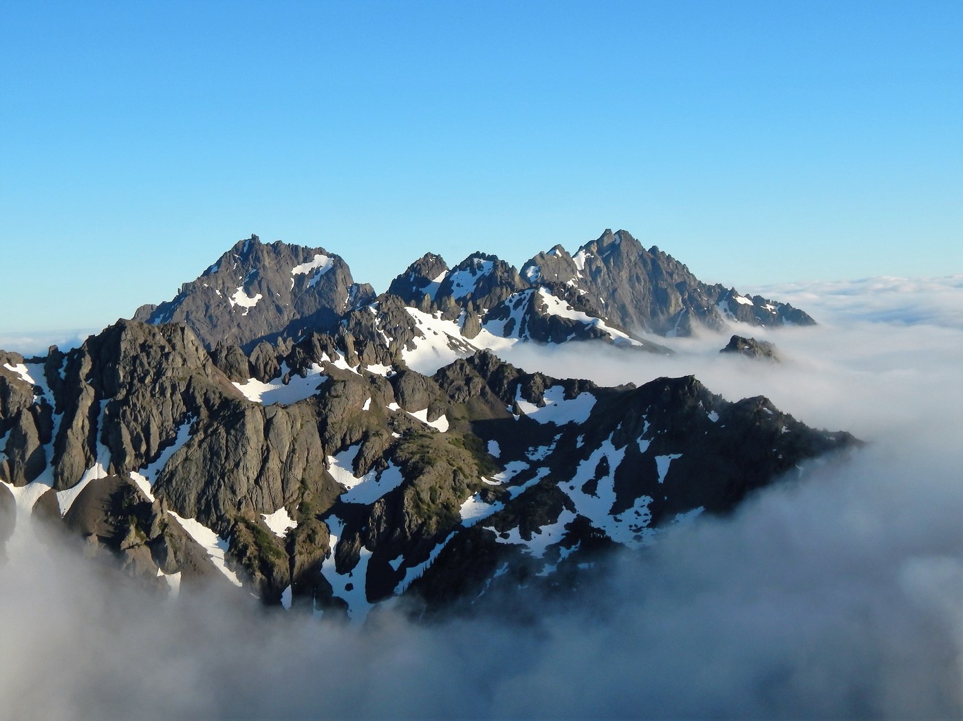 Did an over night up to Marmot Pass. Many books says this is a must do hike and it definitely offers amazing views. Sometimes you have to work a little harder to get them On the Saturday we started on it was cloudy/foggy and even misting some. The trail itself is in good conditions no blowdowns worth mentioning. Sure it climbs in elevation but the grade is not too bad considering the elevation that you are climbing. Took a little over two hours to get to camp Mystery. After setting up camp we hiked up to the pass. Except it was still cloudy and you really couldn't see more than 75ft. I was thinking these were low clouds and that I might be able to get above them by taking the boot path up Mt. Buckhorn (climbs about 1000ft in about a 1/2 mile). This boot path is steep and has lots of little rocks which makes it slippery. I would highly recommend taking hiking poles to help on the way down. After climbing up about 700 feet the clouds gave way. Looking around and seeing the clouds below and the mount peaks rising above I was amazed. I had been here before but something about feeling like you are on an island in a sea of clouds is really magical.