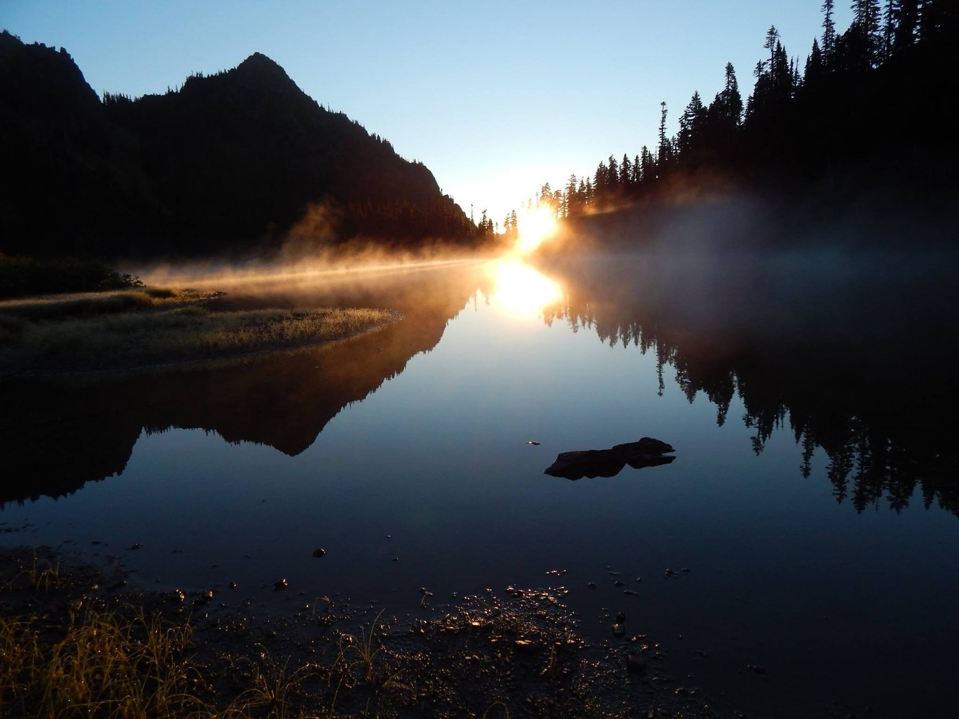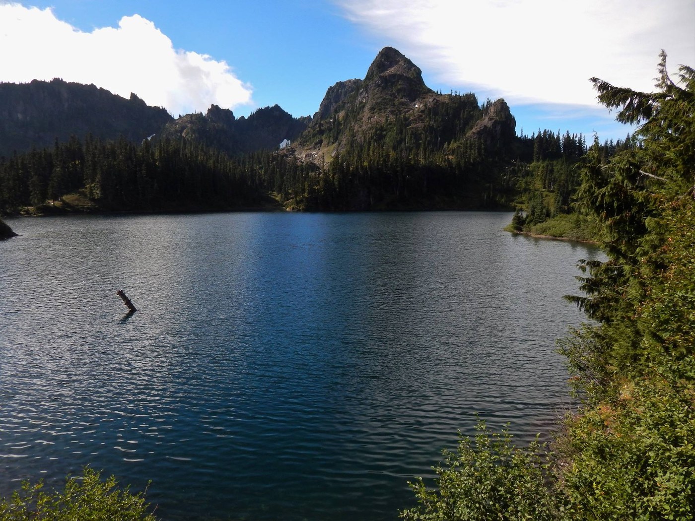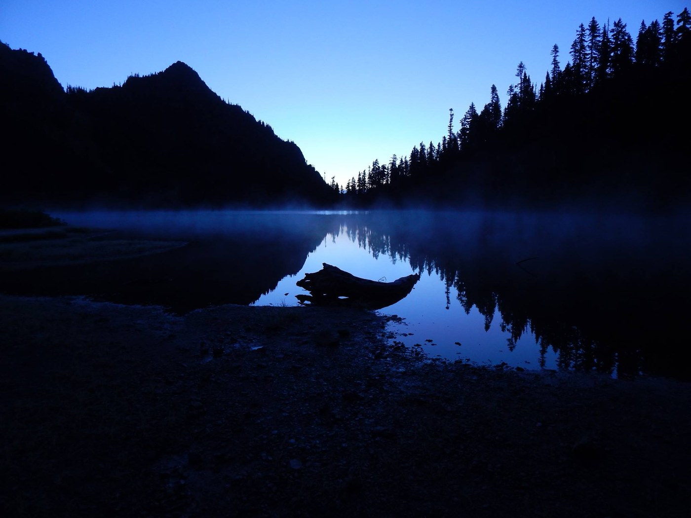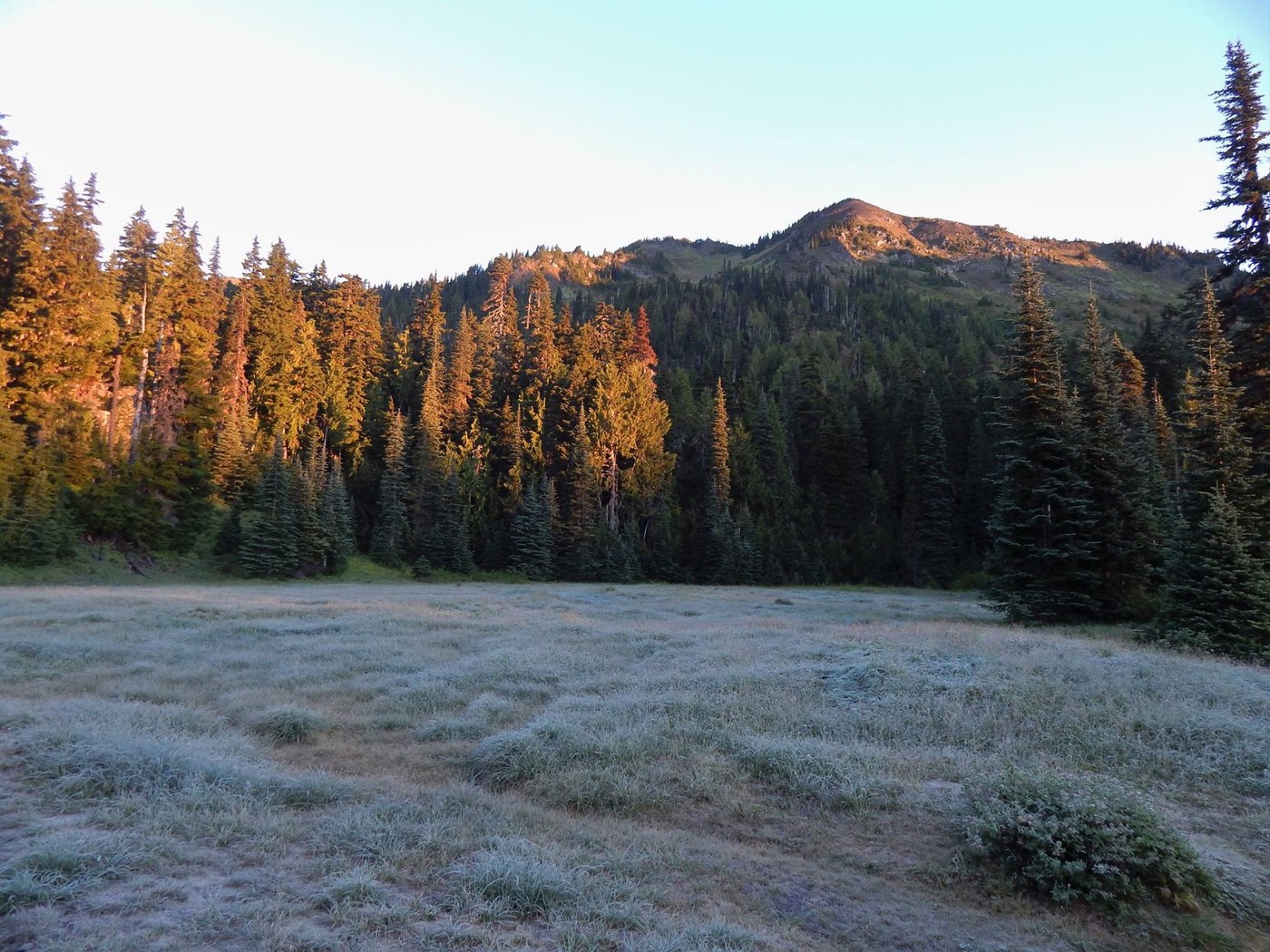After getting to the lake, be warned that many of the camp sites are small. We got there after some rain and several of the sites had pools of water. While we were there, some people camped in the day use areas. The nights got cold and in the mornings our tents were covered in frost. A fire would have been nice, but they are not allowed at this location. On Sunday, I hiked off to try to find Scout Lake. The trail to it is no longer maintained but fairly easy to follow. Only when you get about 1/2 from the lake does the trail play hide-and-seek.