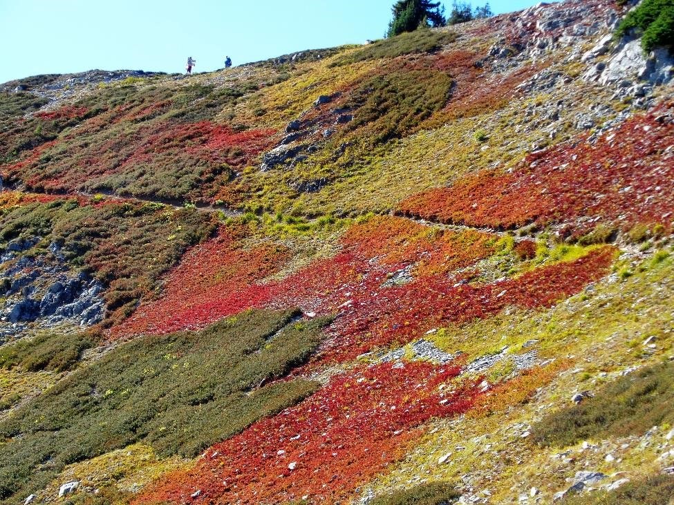 We enjoyed some impressive fall colors on the Maple Pass loop hike. We took the counter-clockwise route, finding the trail in fine condition. The larches were barely hinting at the show to come...time to start contemplating a return trip in October.