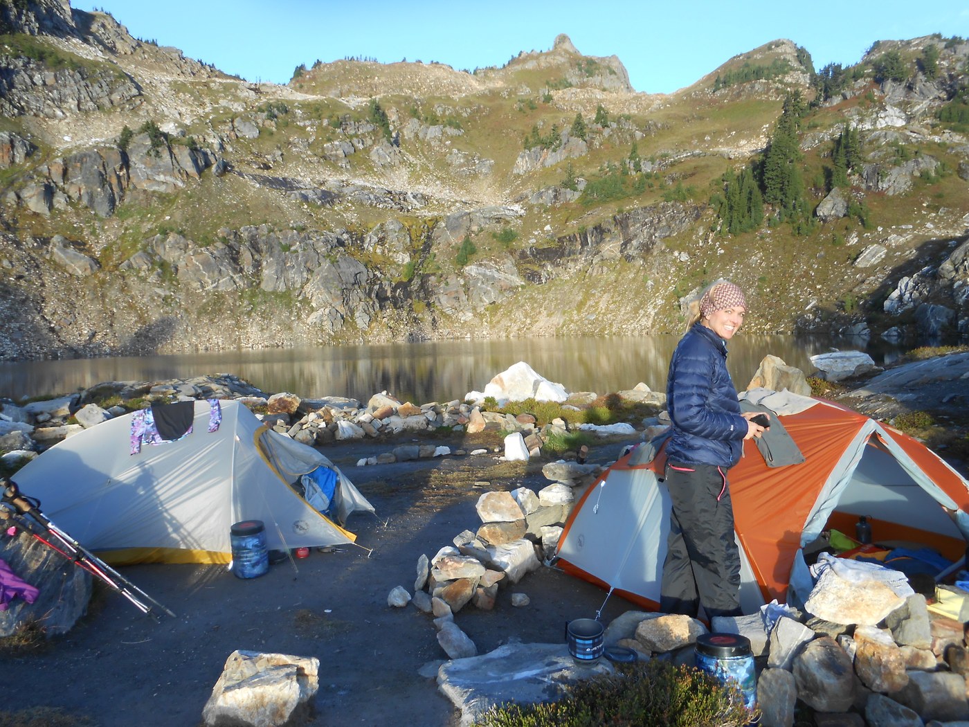 Headed out early with goal of making the 15 miles to Mica Lake in time to enjoy some sun at lake. As with most hiking its never 100% the way you anticipate. The section has many down trees which really slows you down. Everything is passable but a few required pack removal. Had a bear sighting but by the time we realized what we were seeing it scurried away. We ended up having to pull out head lamps and arrived at Mica Lake in the dark. The reward was very nice camp right next to water. Apparently this area can get very windy but we were blessed with a nice evening.