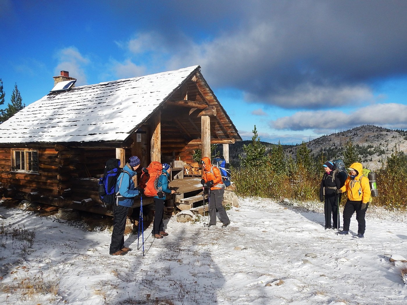 I think the Kettle Crest is one of the most diverse, serene, and adventurous places to hike in Ferry County – anytime of the year. But of all the times I’ve hiked or snowshoed here, I’ve never gone to Snow Peak Cabin! So earlier this spring when some friends wanted a suggestion for a fun backpacking trip, I immediately looked for a free weekend for the cabin and found Oct 8 -10 available, and heck, it can’t be that cold or hot in the shoulder season, right? The forecast called for 90% rain on Saturday, and 70% on Sunday, but we got lucky as the only precip that fell was on the drive over, and both nights.