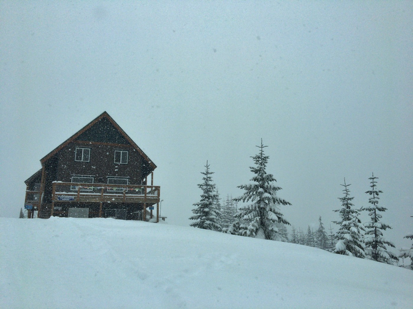 Were set to snowshoe at paradise for the new year but the road from Longmire was closed due to snow. Found this gem of a snowshoe on WTA and took a chance. We followed the snow plow into the snow park which was well appreciated with over 8 inches of snow overnight. The trail was well groomed a good amount of the way and we had the treat of lunching in the Snow Bowl hut in solitude. The warm hit was well appreciated after a challenging and snowy climb up. What a winter wonderland today.