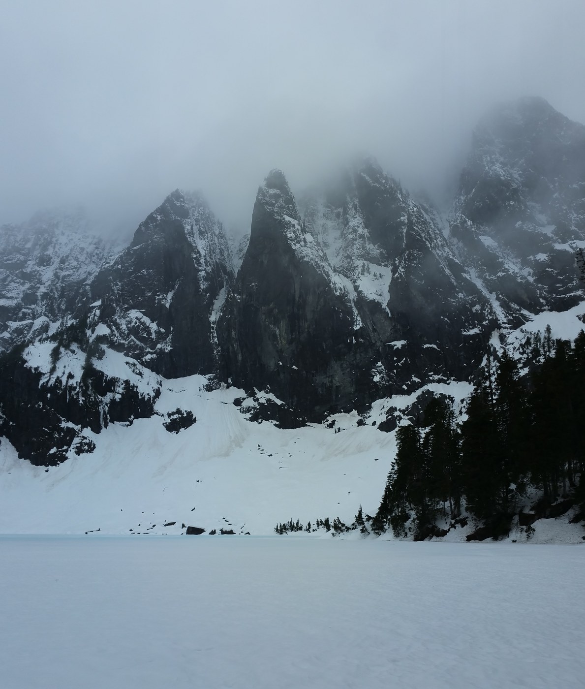 Hiked to Lake Serene today. Ice and snow on and off for first half of the trail turning to snow covered for the last half of the trail with post holing required at points. Recommend snow shoes or at least micro spikes to reach the lake. We saw many avalanches across the lake, be careful crossing snow fields.