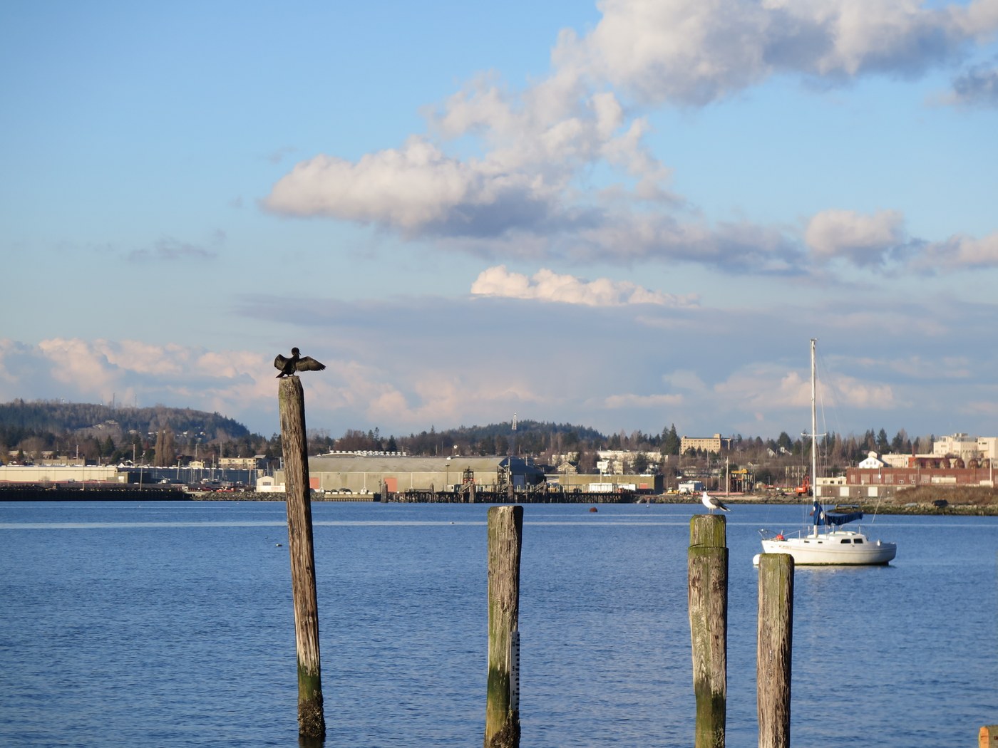 We walked the South Bay Trail on this beautiful Thursday afternoon out and back from the Taylor Avenue dock. Beautiful views of the bay. No trail concerns other than the pedestrian bridge at Boulevard Park is closed due to structural integrity issues and the fishing dock has collapsed there as well and is closed. Many early spring birds out chirping away. Lots of humans out enjoying the sunshine as well.