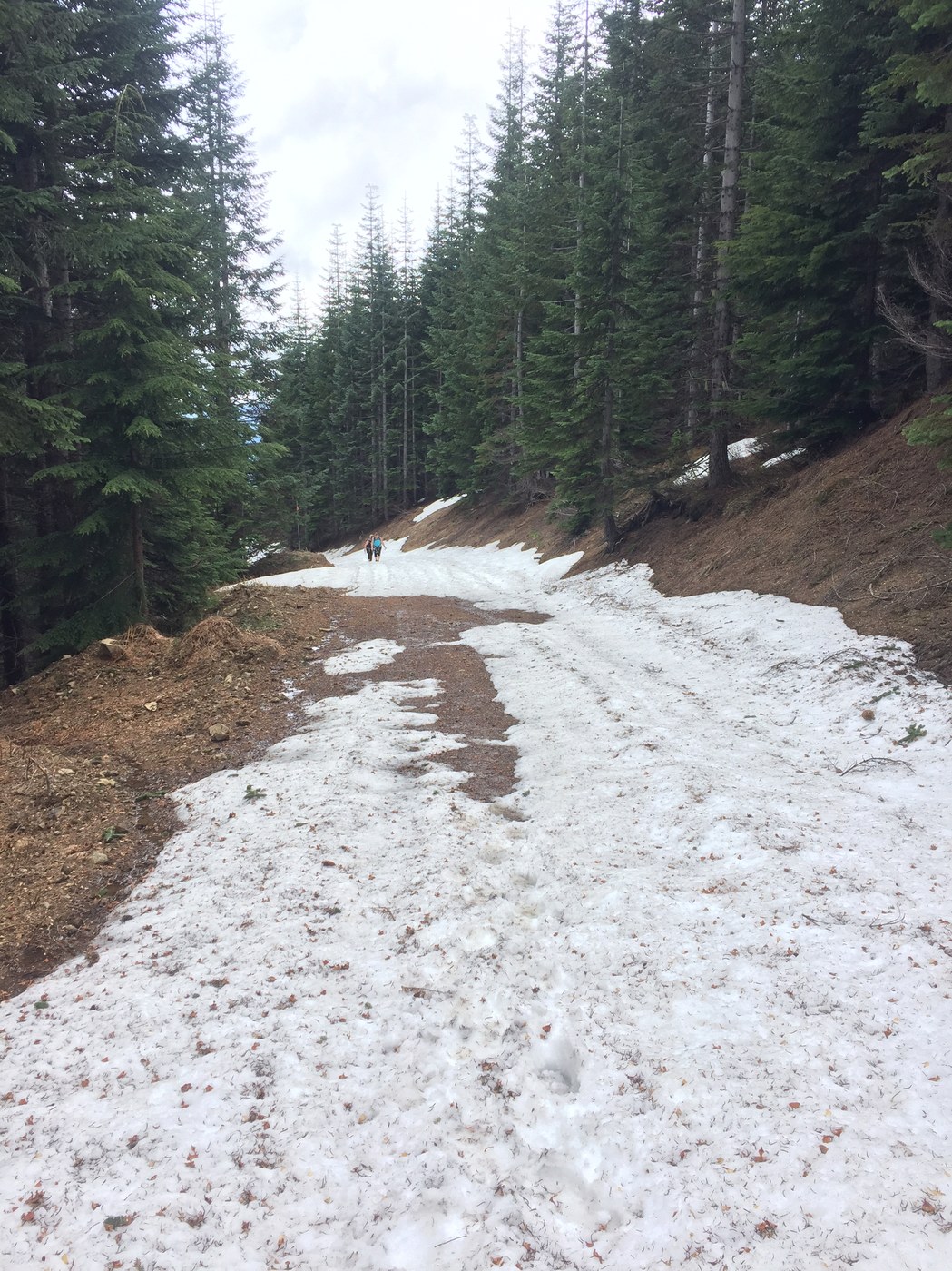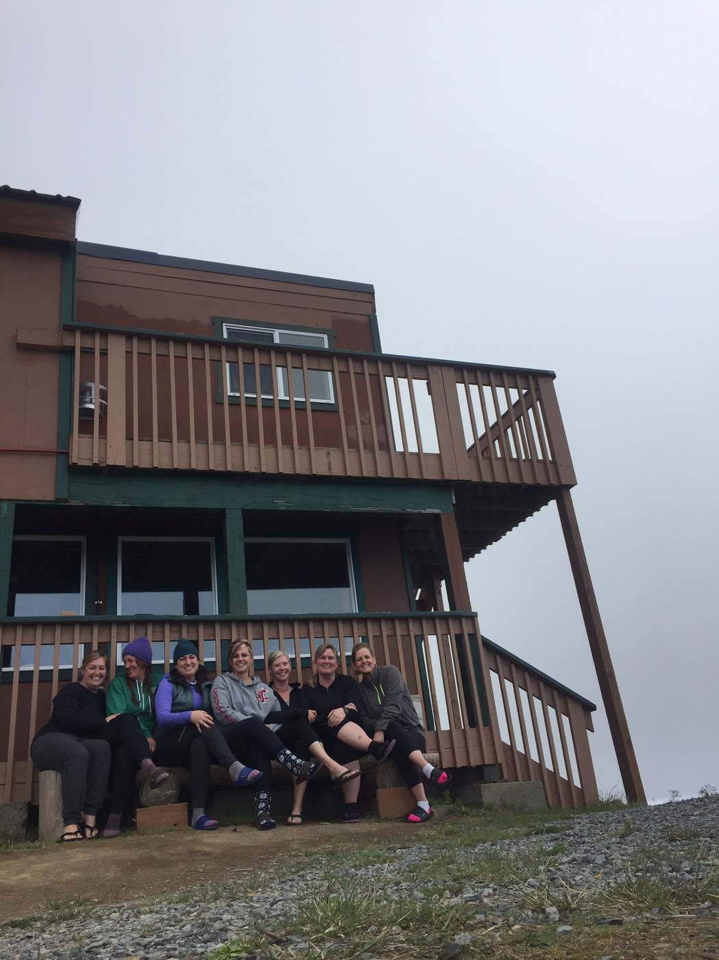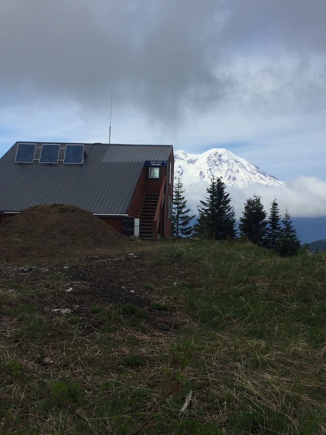 The road is clear of snow until about 1 mile from the Hut. It is melting quickly; there is no snow at the Hut itself. We enjoyed a girls night, eating and drinking well into the night. The mountain came out occasionally, but the weather was mostly cloudy. The Hut is well-stocked...everything you need is there. The bathroom is clean and has a motion detector light, which made late-night trips easy. Fun trip. We may have to make it an annual overnighter!