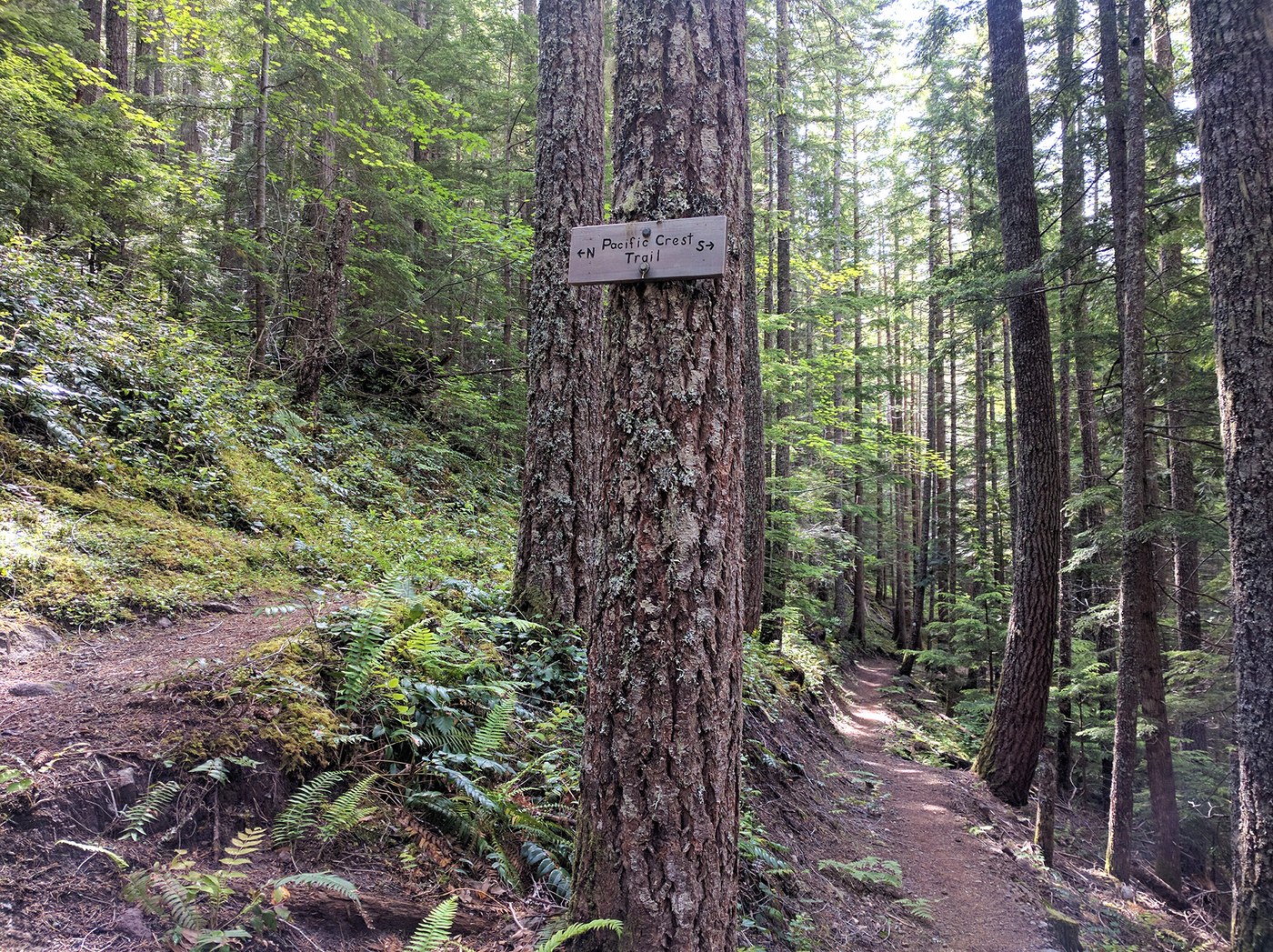 This trail was in excellent condition from the trailhead at the end of NF-26 (deep potholes, but otherwise fine for all vehicles), all the way to its intersection with the PCT about 6.5-7 miles in. There are several small creek crossings, including a couple with footbridges, and a couple without. There are naturally downed trees spanning a couple of these, but you're really risking hurting yourself if you attempt to cross this way; they are slippery. Realistically, you'll need to get your feet wet a couple of times on this trail (at least early in the season).