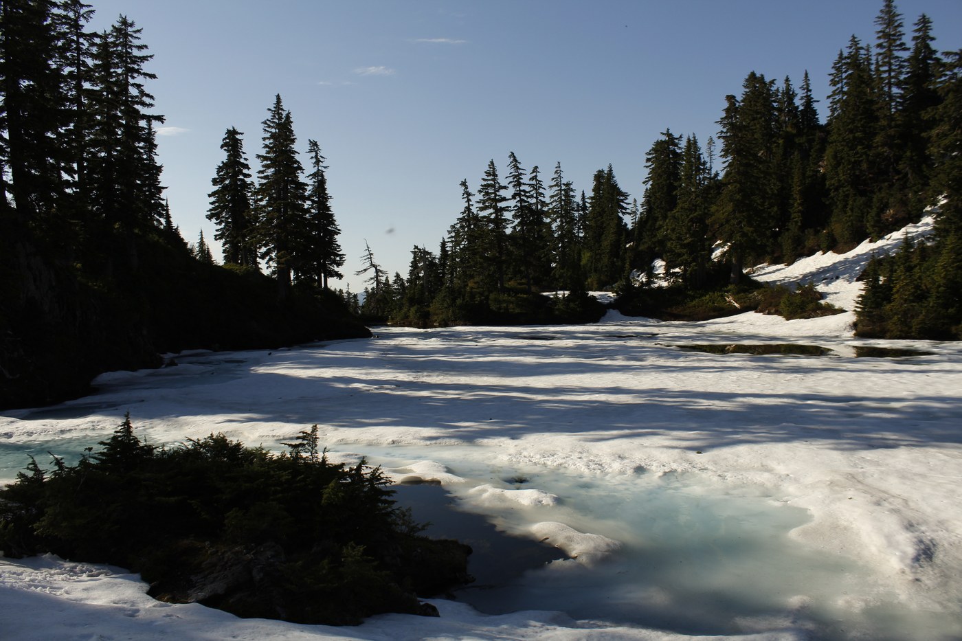 We left Upper Cutthroat Lake around 7:30am and got back down by 10:30am. Bottom line, bring trekking poles, microspikes, and have at least a basic understanding of route-finding if you attempt this before the snow melts.