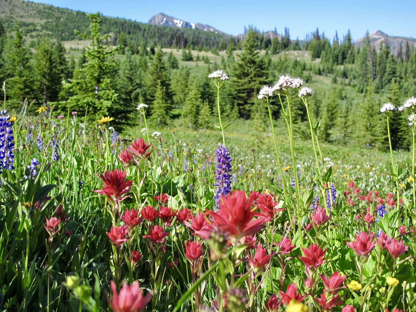 We spent 5 days hiking the eastern 25 miles (out and back) of the Boundary Trail, from Irongate Trailhead through Horseshoe Basin to Upper Cathedral Lake. This place is truly backpacking at its best! The wildflowers are in full bloom, the temperature was in the 70's at most (despite 90+ in Loomis), there are few people, no permits required, plentiful and beautiful open camping, lots of water, continuous and varied scenery, tons of tempting side explorations, and all for minimal and gentle elevation changes. It's one of those places where an extended trip can (and did) take on the feel of a religious experience, and you are planning a return trip before the trip is even over. A few details: