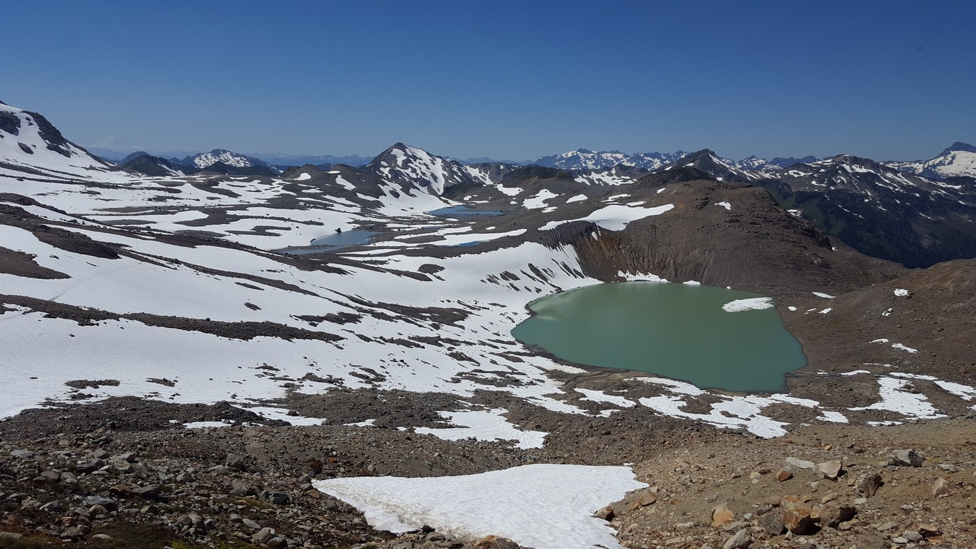 After napping at White Pass, we took the Foam Creek Trail across the traverse and up to the col. From here, the 400ft drop and then climb up to the next view of Glacier Peak was miserable in the evening heat.