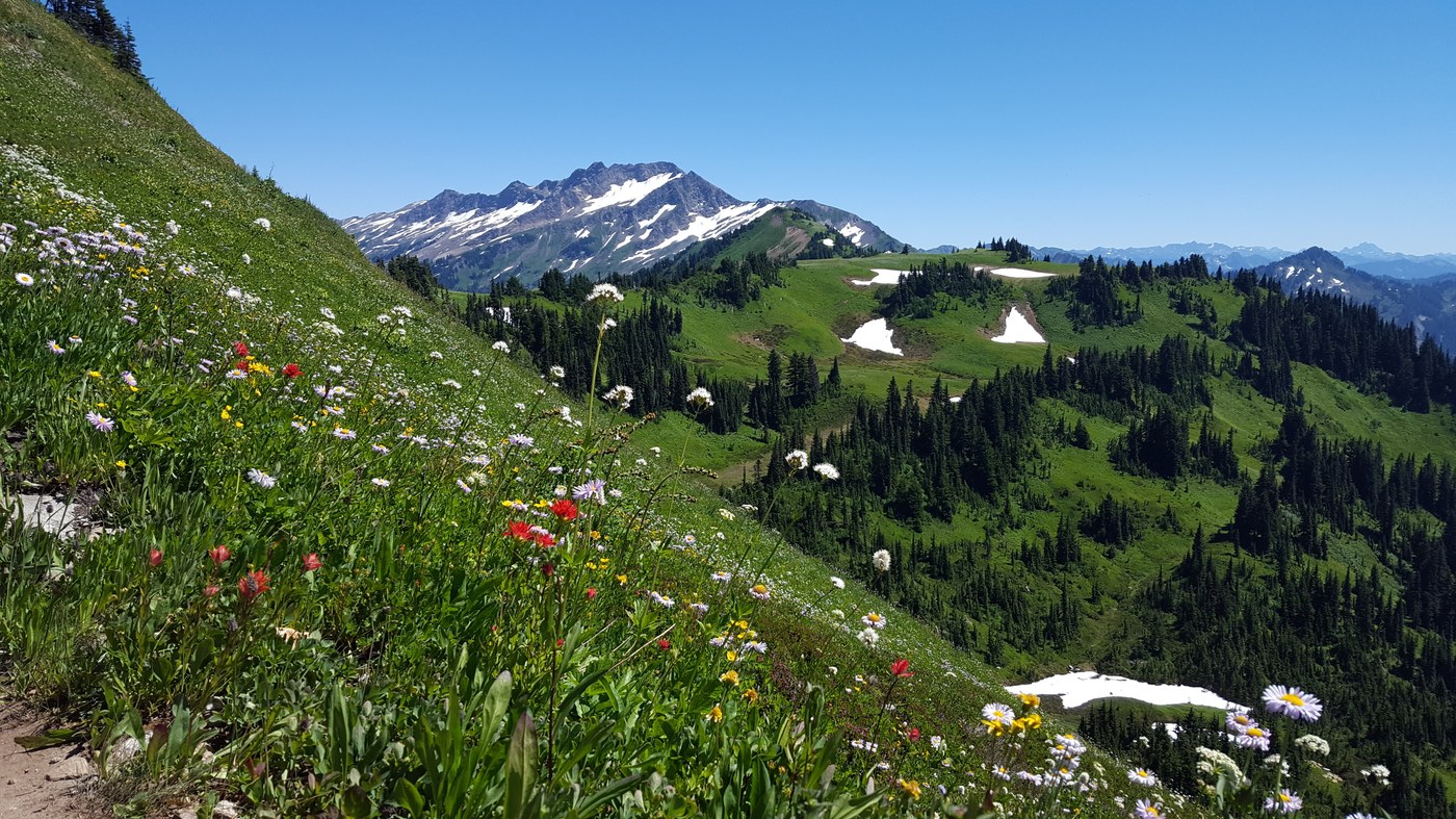 The bugs from Mackinaw shelter to White Pass were horrible. There were millions of black flies and mosquitoes, and they are very bloodthirsty. In contrast, we did see quite a display of wildflowers on our way up. I saw Tiger Lily, Lupin, Paintbrush, Yellow Aster, and Anemone to name a few.
