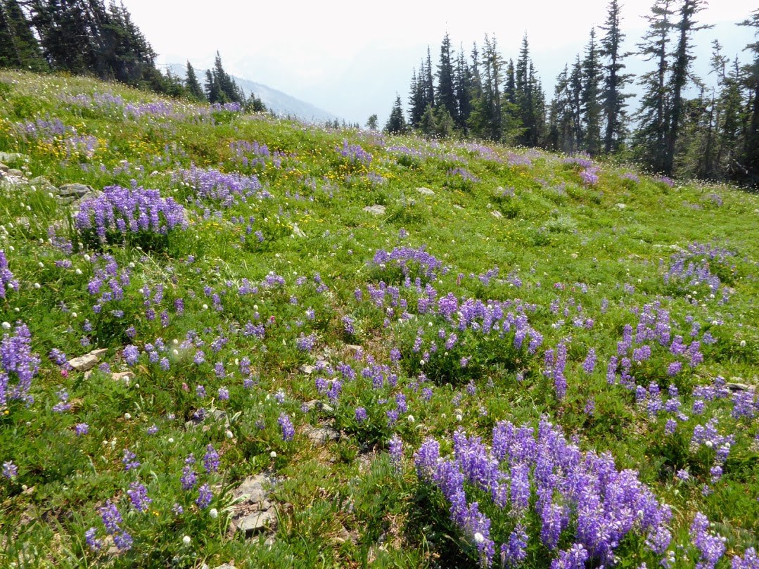 We went back via the Badger Valley route, which surprised us by going down quite a bit, maybe close to 1,000 feet, and then up up up at least 2,500 feet, maybe more (just guessing), but worth it after you head out of the woods, through glorious meadows with flowers and marmots. Awesome trip.