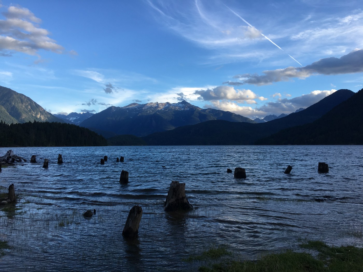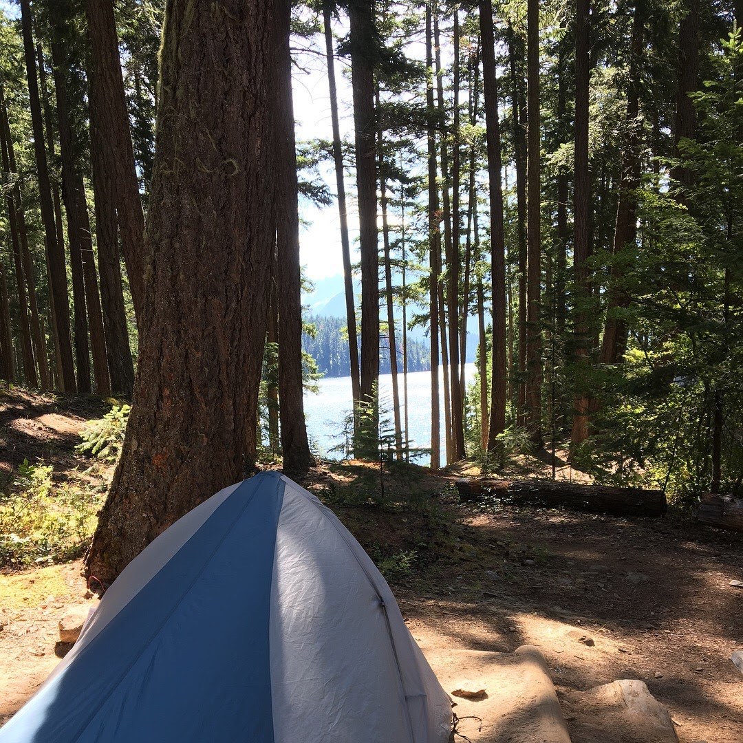 Great 2 night overnight on the east bank Ross Lake. Hiked 6.7 miles in to Roland Creek for the first night - ample water flowing, nice big open campsites here. There was even a throne to use. Trail was in good condition, fairly flat though with some ups and downs, and peekaboo views of the lake.