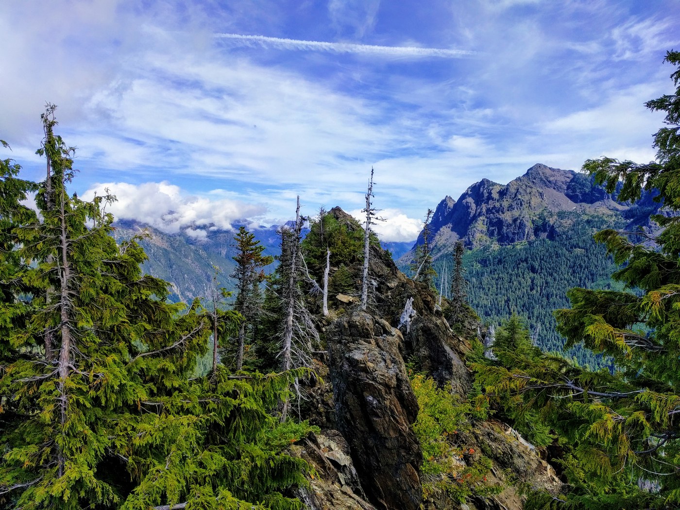 From Wagonwheel head out and up NE. You will find a faint even steeper trail that's mostly overgrown and not maintained. At times it will be hard to follow and it will disappear once you gain the connecting ridge. My approach to the summit continued NE via the ridge. To continue some scrambling experience from this point is recommended, there is some exposure. For the easiest(not likely with snow/ice, much harder) approach drop down the east side to the meadow area, trek across a rock/scree filled chute, then summit from the far NE side(scrambling SW). The summit boasts one of the best 360 views I've seen in the east Olympics. Mount - Copper, Ellinor, Washington, Pershing, Cruiser, Lincoln all visible. I could also see where hikers drop into Mildred Lakes and up to Lake of the Angels.