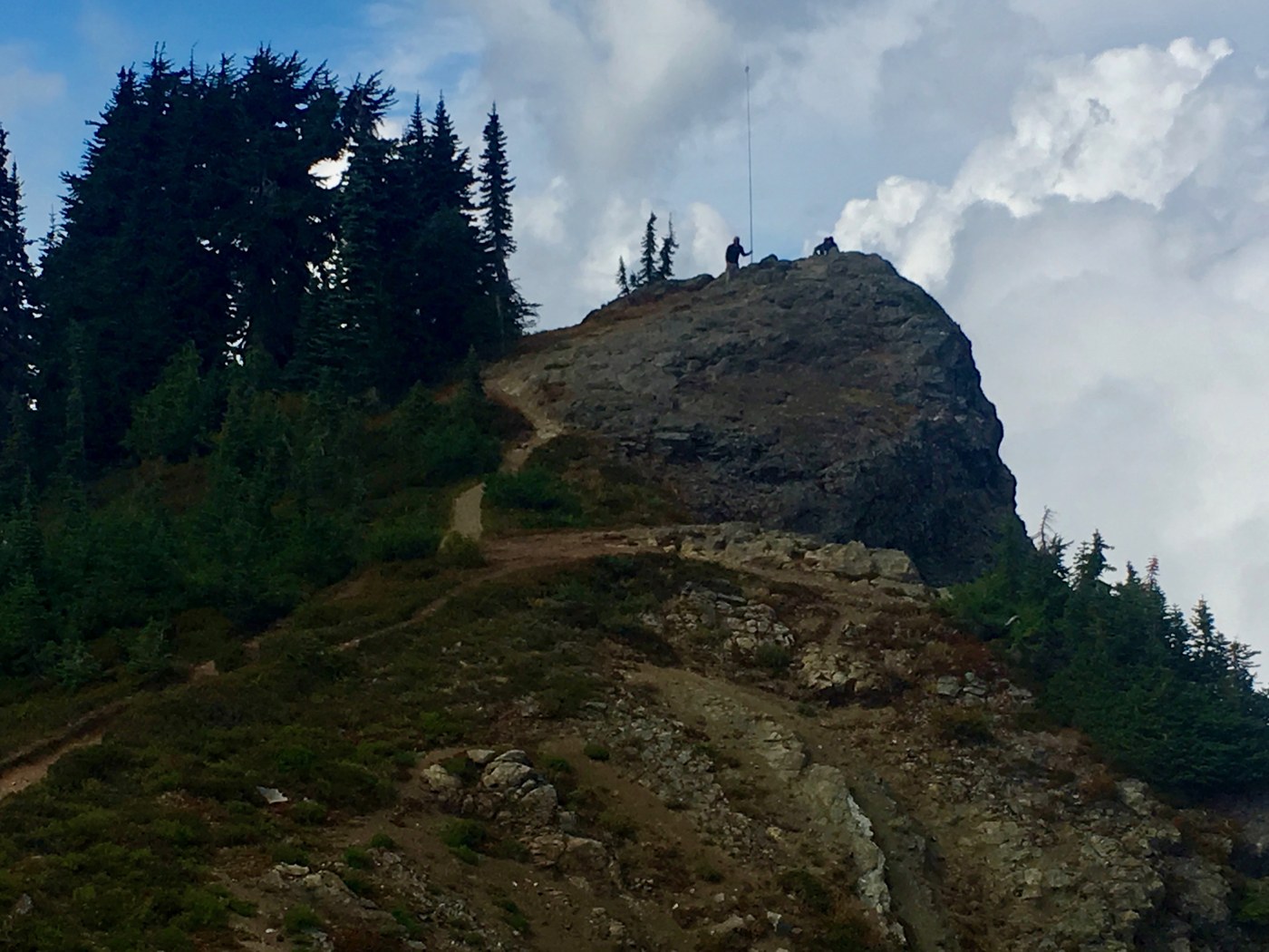 About half of the trail is very rocky or root covered, so I would recommend poles. The biggest issue is that it is just a constant up at a rate of about 1000 feet of elevation for each mile of trail. There are very few flat stretches, and those are short. A lot of clouds, so we didn't get the full impact of the views this trail would have to offer on a clearer day, but still they were great.