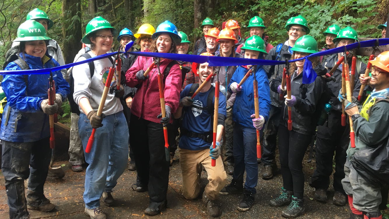 The trail work finished around 1pm with a ribbon cutting ceremony at the junction of the Pratt River Connector and the main bridge crossing the Snoqualmie River. The various organizations were recognized for their work on the trails in the area.