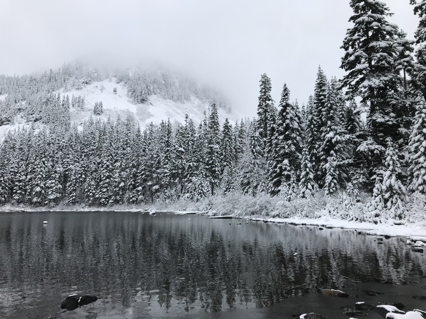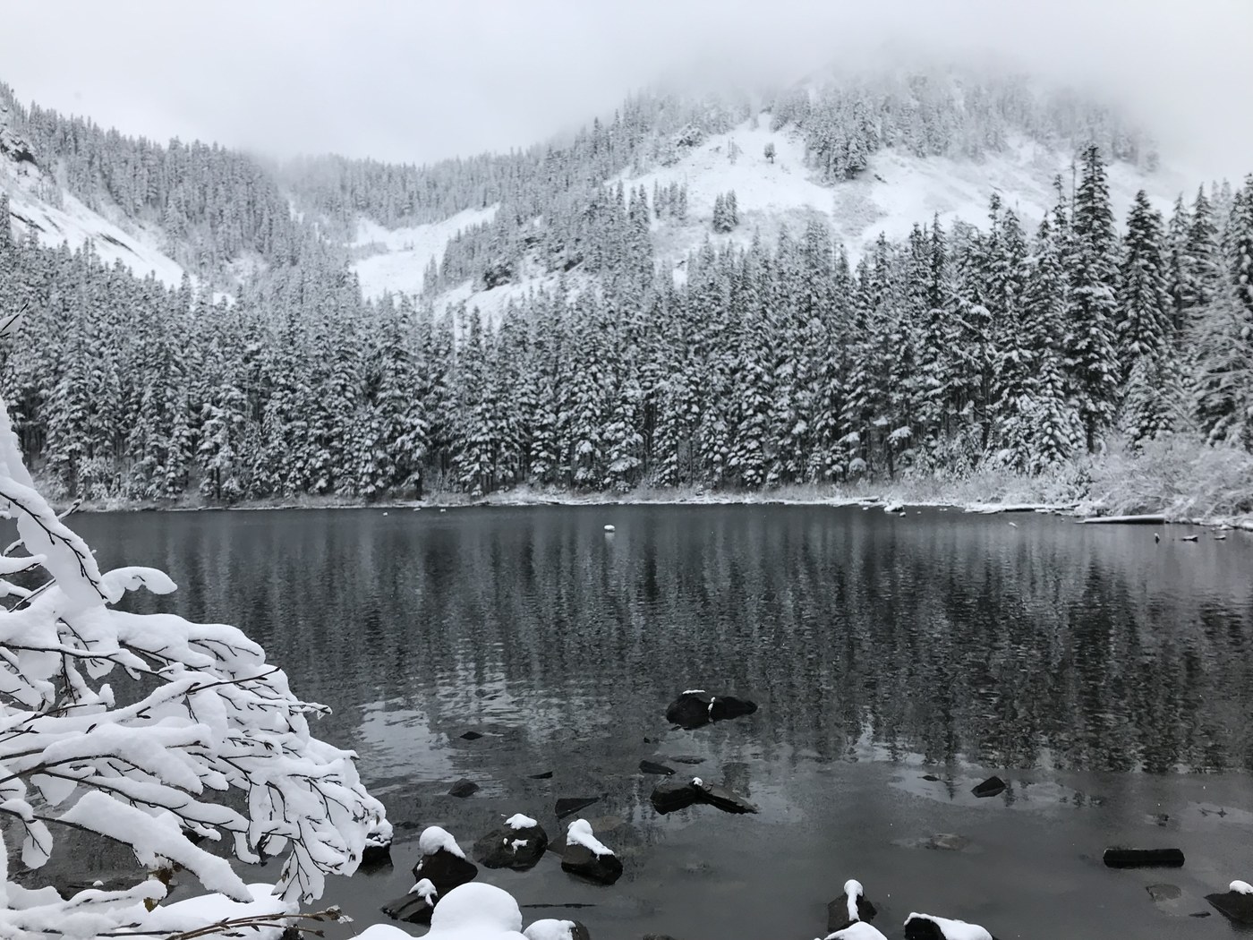 I arrived at the parking lot at 11:00 am, fully anticipating a hard time finding parking since it was a Saturday and was extremely surprised to see about 10 cars in the parking lot (it was pretty empty). The hike itself is a steady incline on the way up, a little steeper during the switchbacks and then levels out closer to the lake; it wasn't too difficult but you'll still get a good workout. There was snow everywhere and it became thicker the higher I hiked. There are little waterfalls near the beginning and gorgeous breaks in the trees closer to the lake that provide views of snow-covered evergreens on the hillsides nearby.