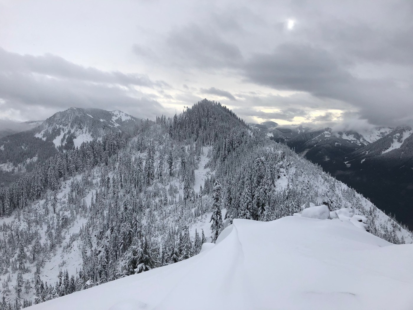 With the privilege of being first comes the responsibility of breaking trail through drifts of powdery snow that went up to my hips at times. It less resembled hiking and more resembled swimming. Specifically, the crawl stroke. What else do you do when the snow won't support your weight - stop and turn around?