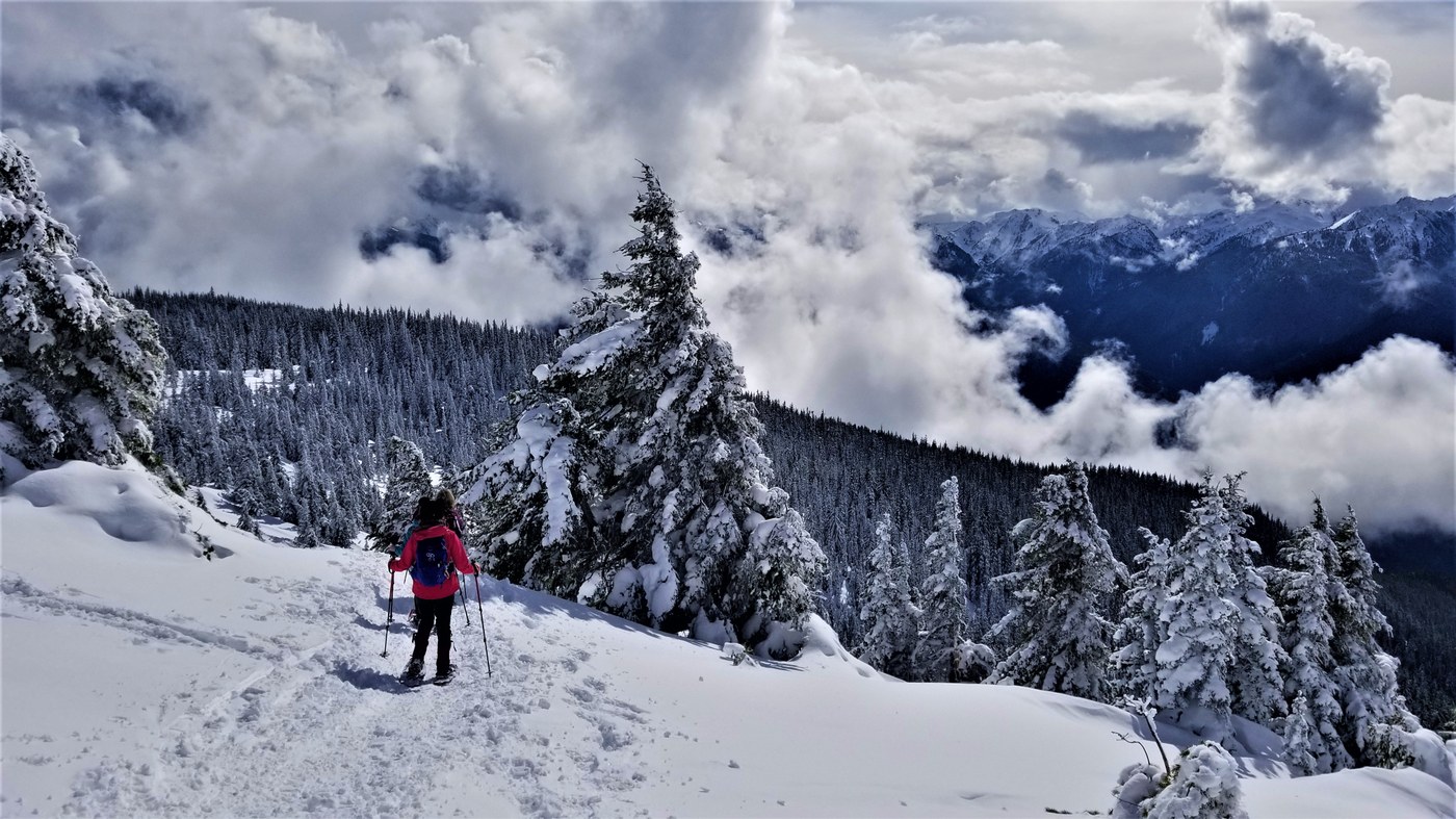 Did a short snowshoe trip... we thought we wouldn't get any views because in town things were very overcast.. but we got above the cloud layer and had a wonderful trip. There were reports of some avalanches on the North side of the ridge earlier that day.