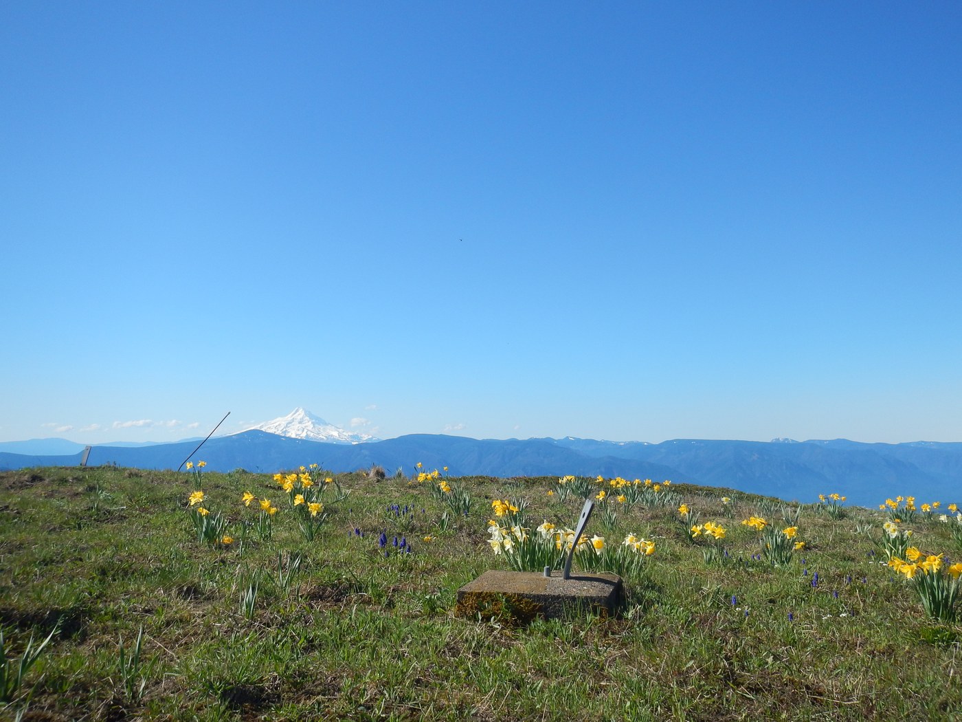 Craig Romano's Day Hiking Columbia River Gorge book posits that you can get Dog Mountain-esque views for less of a workout by visiting Grassy Knoll. I would counter that Grassy Knoll is steeper and more challenging than Dog Mountain (but I haven't done Dog Mountain in a while, so my memory may be misleading me). At any rate, the trail to Grassy Knoll is steep! (the flowers here are good, but you've gotta want to get to them).