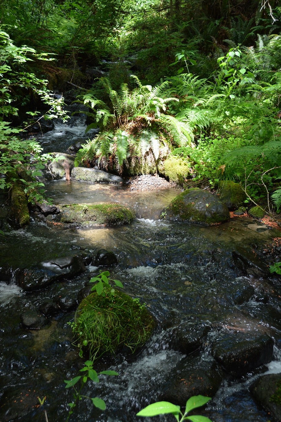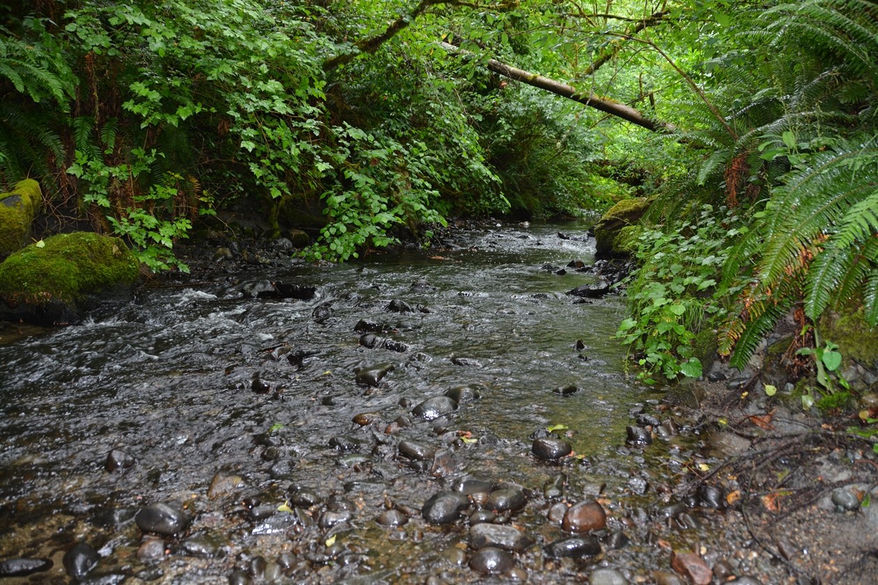 You can take the Main Loop, 1.1 miles round trip from the trailhead (0.9 mile from the map sign). Side loop trails allow you to get to two small creeks that flow through the Preserve on their way to Puget Sound.