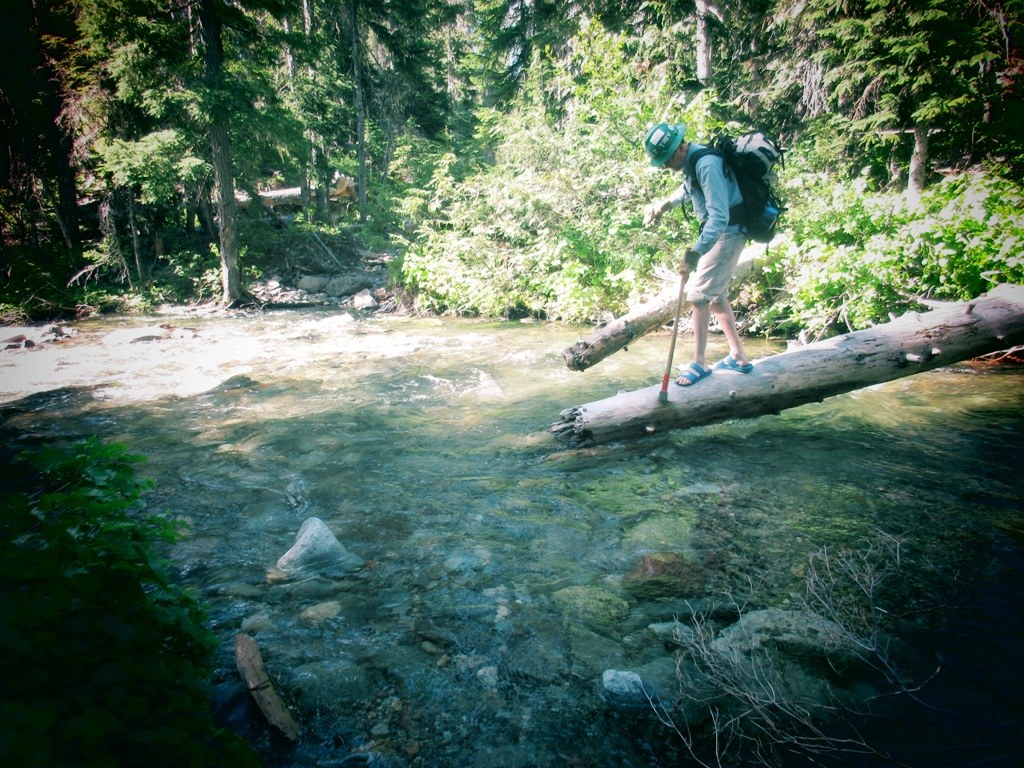 We finally returned to our camp at Cougar Creek about 5:00. Some decided to roll up their pants above knee height and just ford the cool Cougar Creek at the ford near our camp. Others opted to make a dry crossing by bushwhacking through the woods to a log jam about 200 yard downstream from our camp.