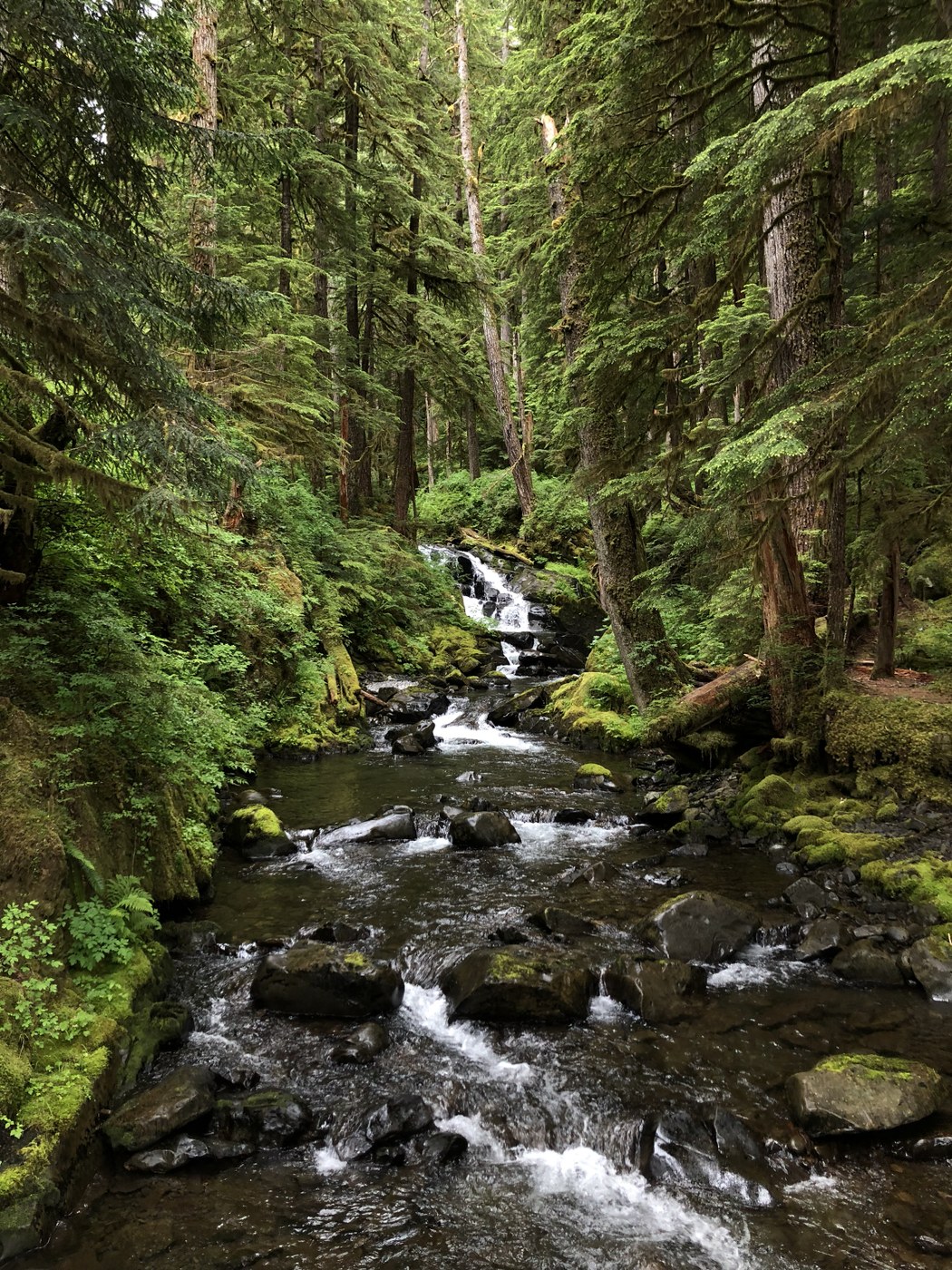 Once you reach the resort, go through the parking lot. (Good spot for a bathroom break!) Next to the entrance there’s a nice path that goes to and through the campgrounds. Once you get through the campgrounds, the final 2 miles are really lovely again, though not as rainforest-y as the beginning of the trail.