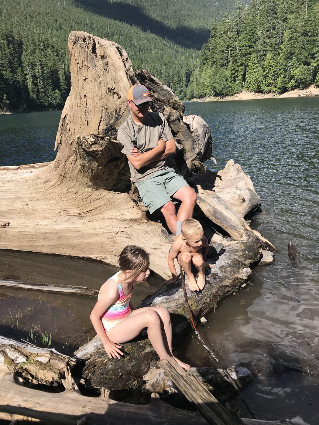 The lake is lined with logs, which move around as the wind changes. Our kids enjoyed playing on the lake, but we were careful to keep a close eye on them.