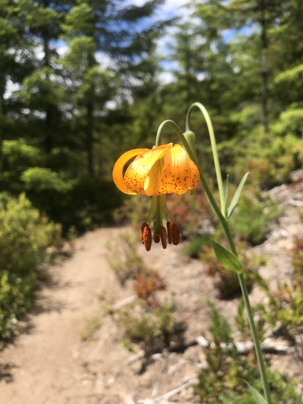 There are three viewpoints overlooking the valley, but I found them to be rather unremarkable. You get a great look at Ranger Creek Airport. If you’ve made it to the third viewpoint, I recommend going just a little bit farther to experience the trail following the edge of a rocky cliff. I saw one tiger lily, some lupine, trillium, and quite a few candysticks.