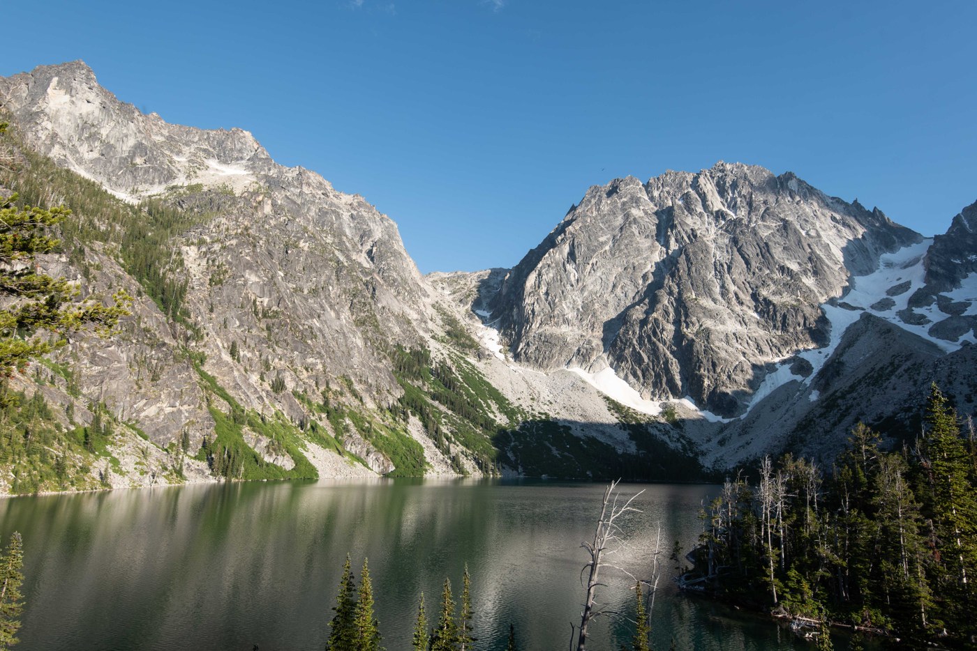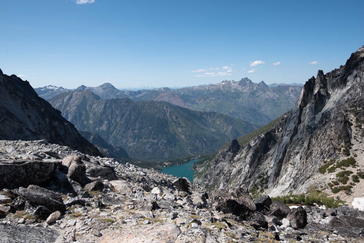 As for the rest of the hike....I don't think I'll ever go up and down Aasgard in the same day again. We went from the Stuart trailhead to the highest lake basin in the Enchantments and turned around. I thought this would be better than the through-hike, with its higher total mileage and higher total elevation drop. Wrong. I've done the through-hike once before with a one-night stop at Snow Lake. Take the extra mileage and start at a time that requires a headlamp, hike all the way through. Downhill on Aasgard is pure torture. I was worried that my tired legs would falter while choosing foot placement on the talus and boulders on the long way down.