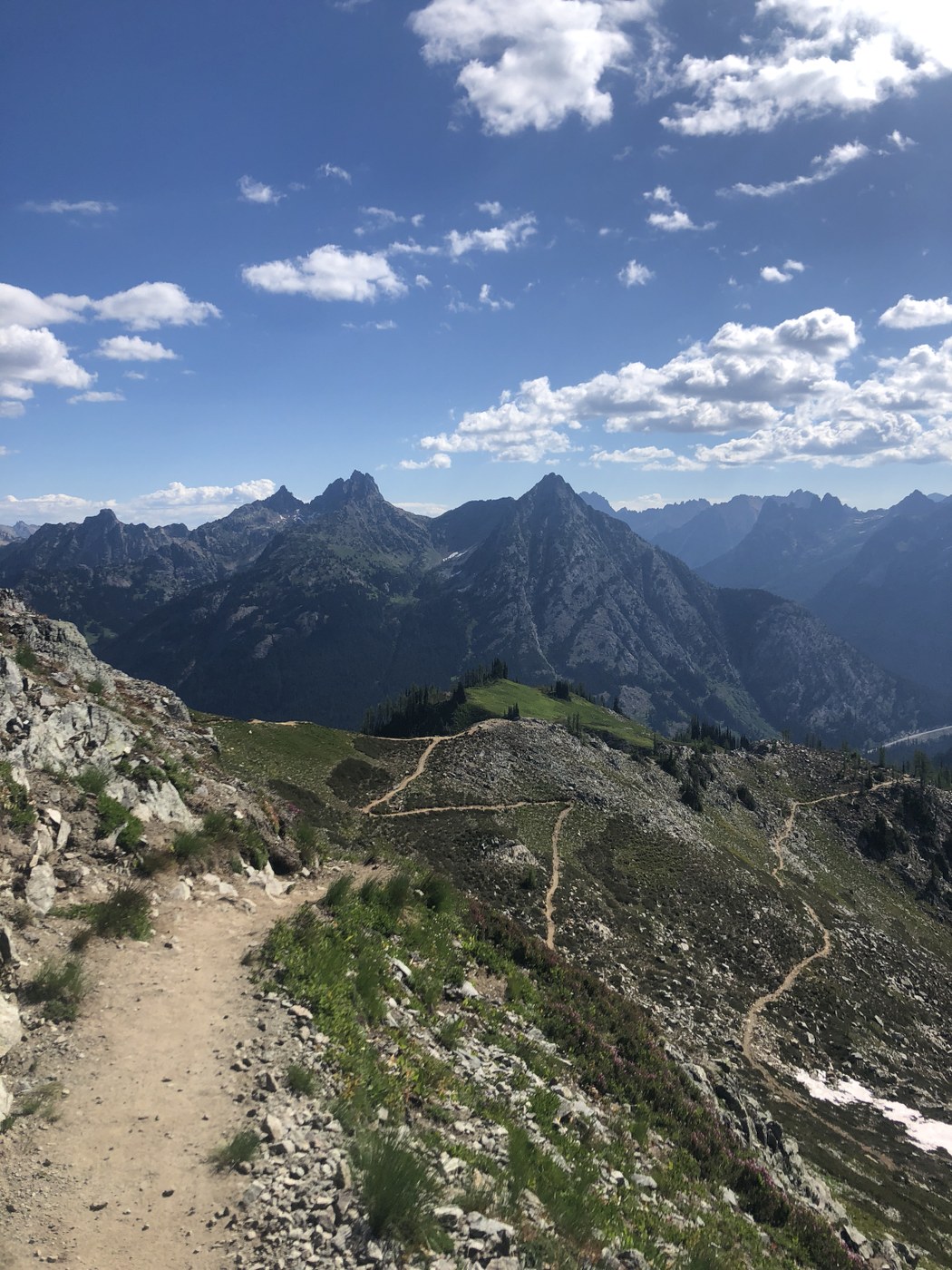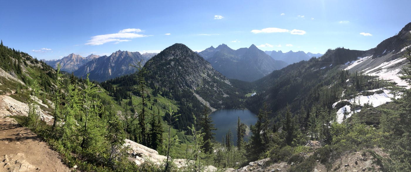 This is by far one of my new favorite hikes! I climbed Sourdough Mountain Sunday morning, then drove up to the Rainy Pass TH and backpacked in to Lake Ann. There is no camping within .25 miles of the lake, but there is a convenient campsite right before the “no camping beyond this point” sign! Early the next morning I headed up the pass to do the loop counter-clockwise. It was a nice gradual ascent, and I was able to refill my water bottles at a little stream crossing. The bugs were the worst part. I ran out of bug spray the night before due to the hordes at my camp site, so the hike the next day was pretty miserable. Other than that, I thoroughly enjoyed the endless mountain views, sunny weather, and peaceful solitude. Poles were helpful on the steeper descent, especially due to my heavy pack, but I would not consider them necessary. Happy hiking!