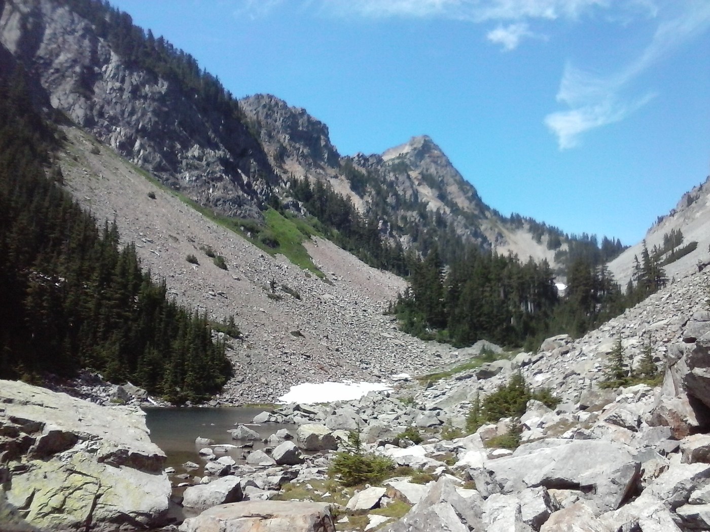 It can be extended by either continuing upward from the second lake to Melakwa Pass with a view northward and down into Snow Lake. Just head to the grove of trees above and traverse thru them along the creek bed that runs down the middle. Then head for the rock prow up ahead and go to the left of it until you see a dirt trail into the woods that takes you the rest of the way. I've done that several times in the past.