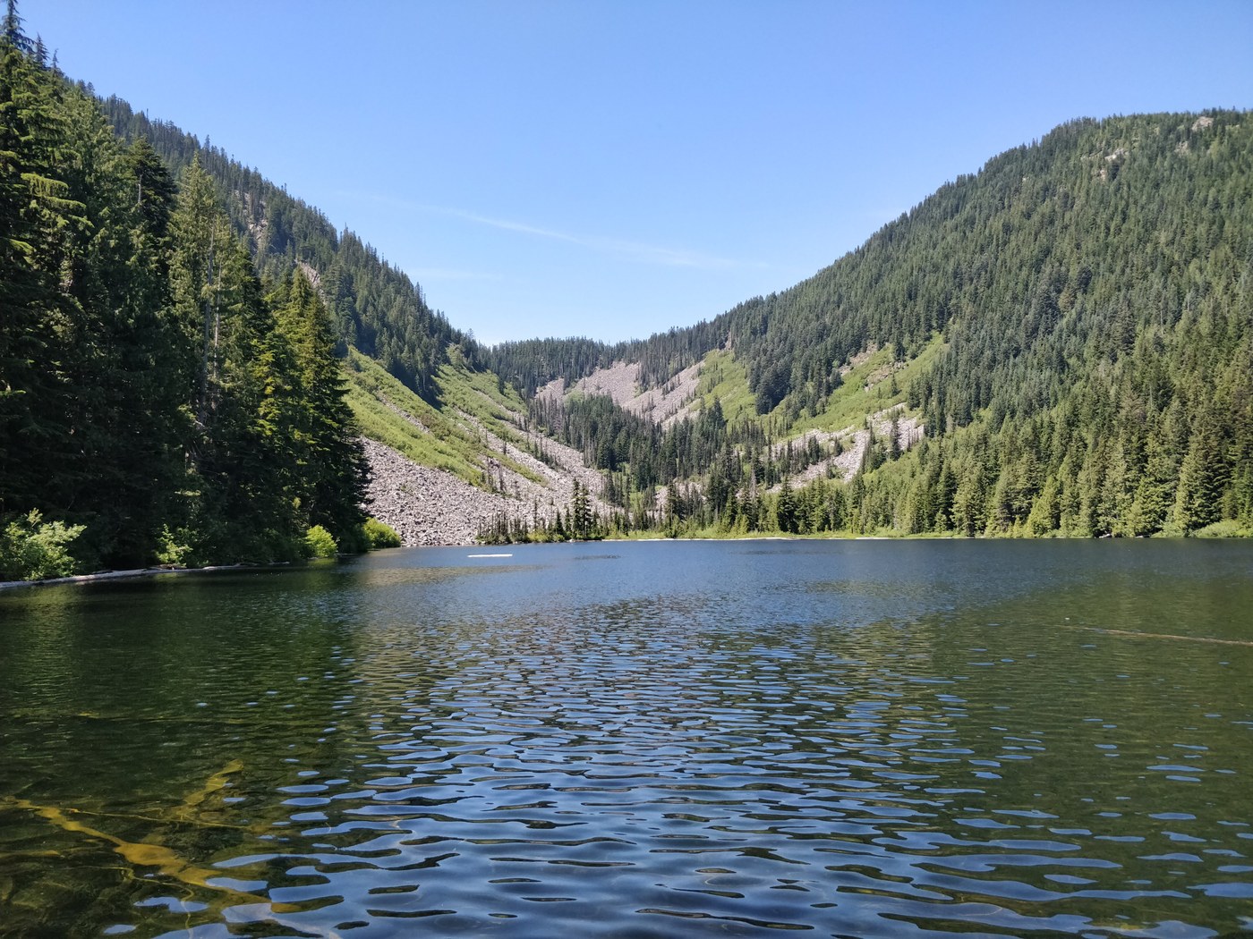 This was a great hike to do with all ages, the trail was in great shape and lots to see along the way, including chipmunks and falls. We hiked to the first lake, stopped there, swam, ate and relaxed and then decided to continue on to Olallie Lake. Continuing on to Olallie was a great choice - while Talapus was crowded, Olallie was quiet.