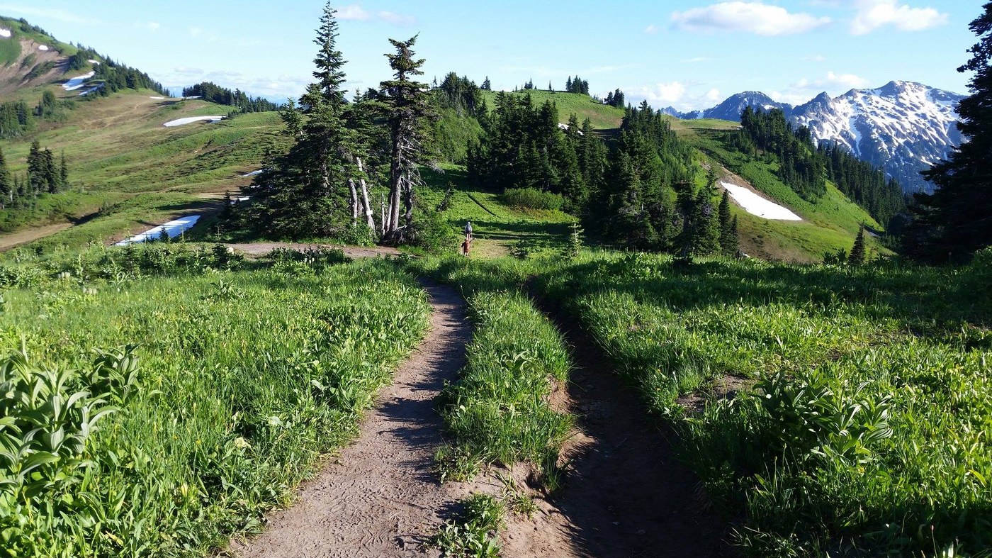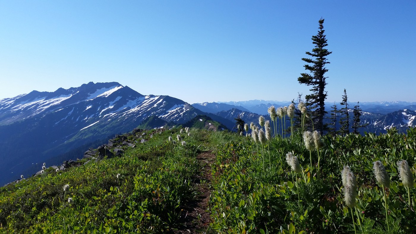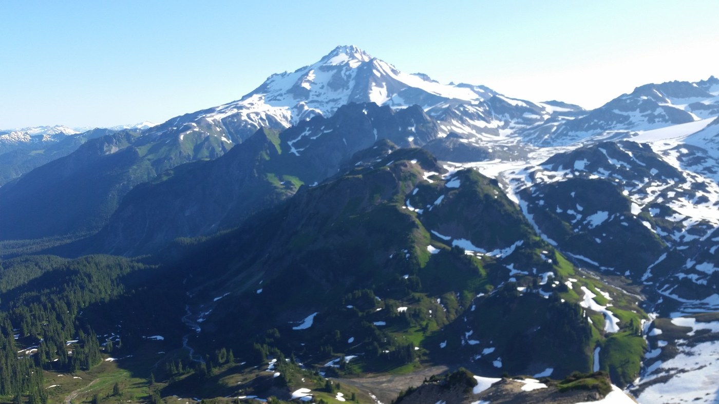 Wonderful overnight with the hubby! We had a late start at 11:30am but the trail up to Mackinaw Shelter was smooth sailing! We topped off the water bottles and headed up the switchbacks to the junction with the PCT. Pretty hot afternoon for that climb-I was So grateful for my new Gossamer Gear Chrome Umbrella! It was hands free and made a HUGE difference to hike in the shade! My GPS said 4 miles up the PCT, not 3?? Anyway on we went to White Pass and had lovely evening in the beautiful camping area below the pass. The next morning, I followed the little boot path up to the top of White Mountain for awesome views of Glacier Peak! Then back down to the car. Stunning Area! Good times even with our cramped schedule!