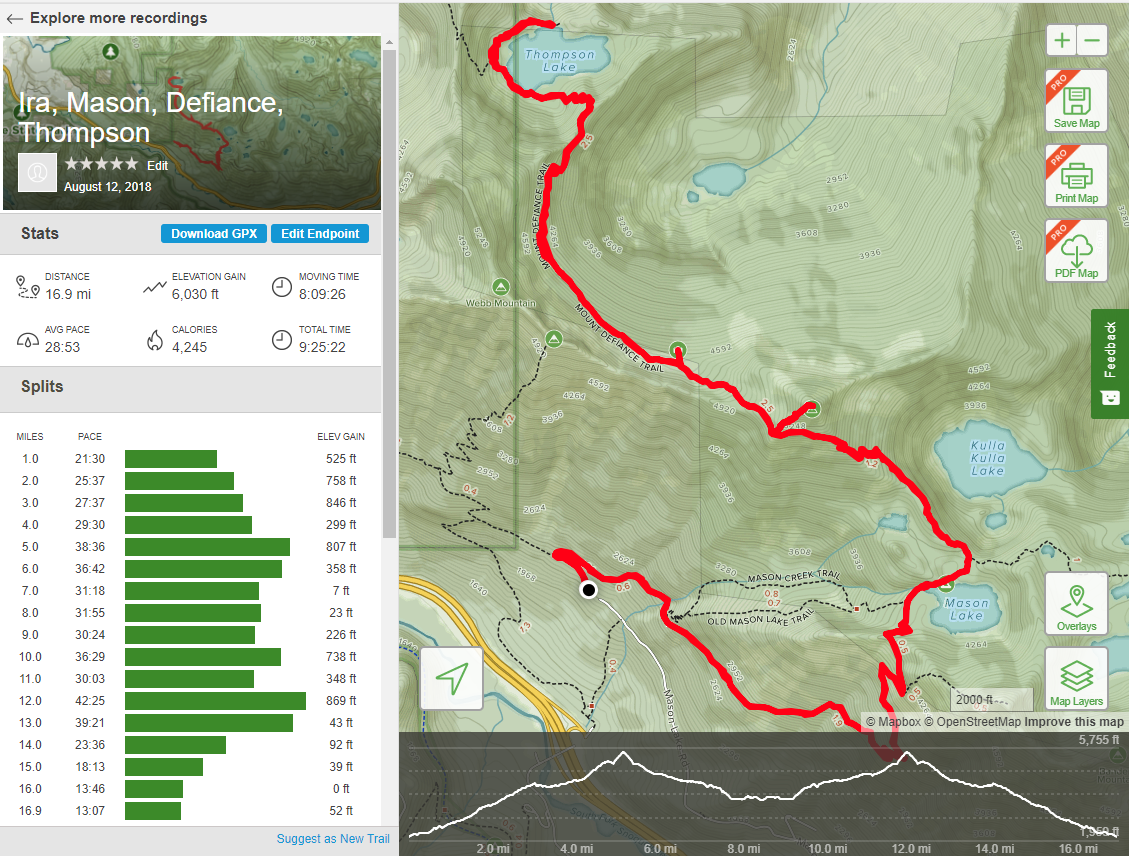 I started the day before 6 AM at the Ira Spring trail parking lot. Privy had no light, no TP, and no hand sanitizer. I had all three. Come prepared boys and girls. Headed up to Mason Lake then to the summit of Mt Defiance around 8:30 AM. Summit was in clouds.