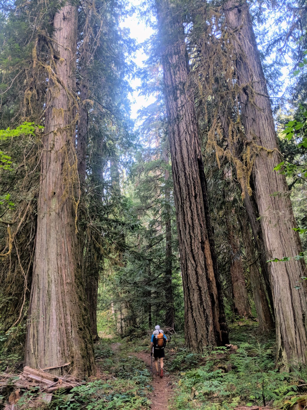 The Big Beaver Trail has some amazingly large cedar trees -- make sure to take note of the size of these trees, deep in North Cascades National Park. We also saw signs of a very, very old forest fire.