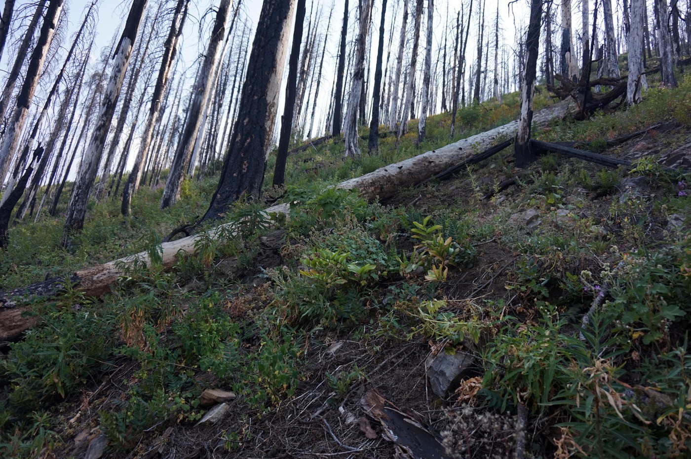 The trail is very burned- but not hard to navigate (in my opinion at least). The trees are incredibly unstable in this section of trail (there was a large tree that fell and blocked the trail overnight). So keep those headphones out of your ears, and don't spend the night in any of the burned areas (although, this would be hard to do... given the slope). There are a couple muddy patches along the way with some fresh water along the climb (I do not know how long these streams last into the summer, but it was nice to be able to fill up again).