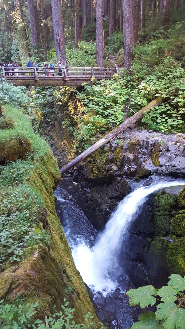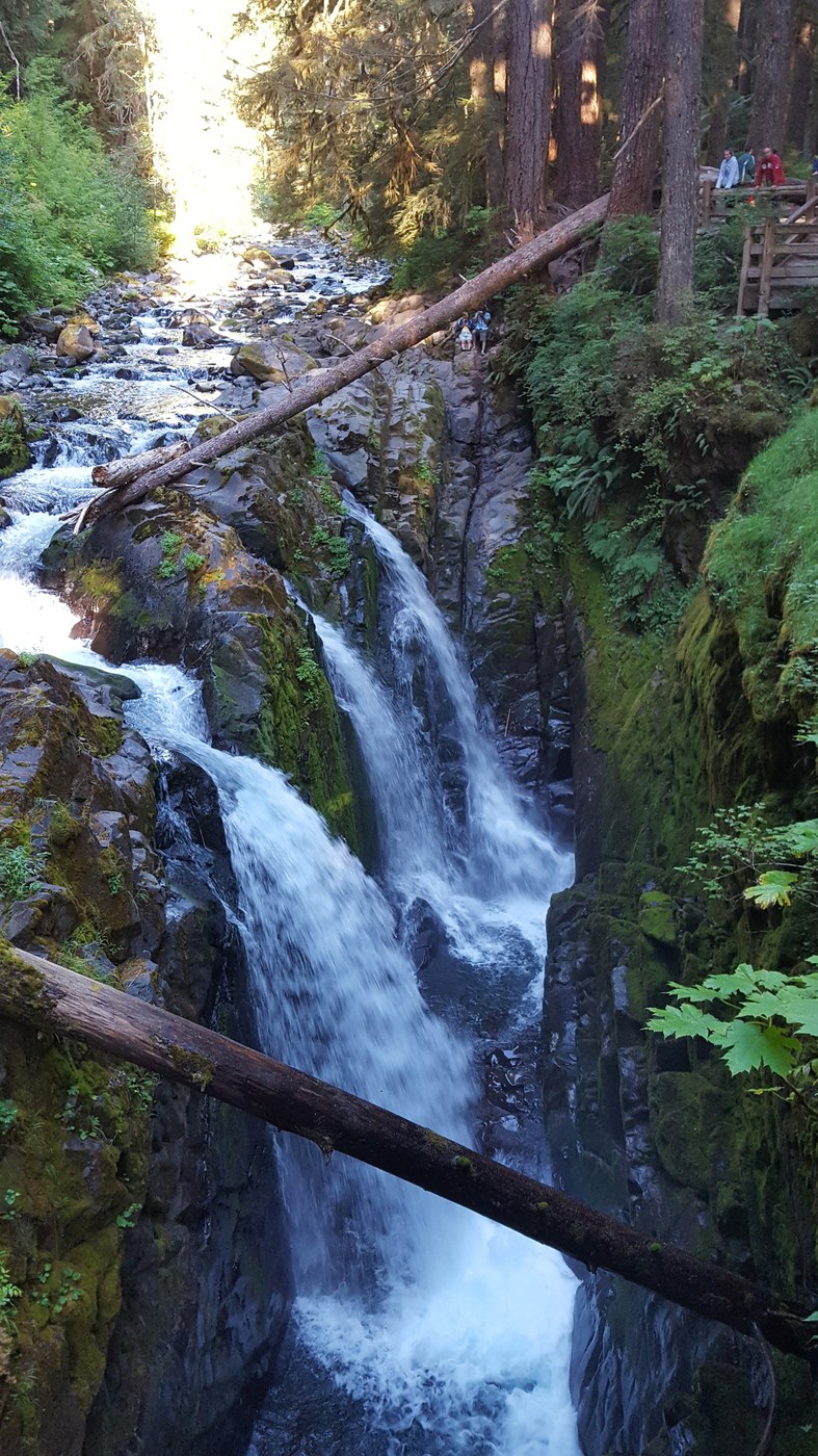 Large parking lot at the end of Sol Duc Road and privies available. Considering its accessibility, this trail is very, very crowded. Folks of all ages, abilities, and shoe types along this short and easy trail. We were out and back in about forty minutes. Well worth the trek if you are in the area.
