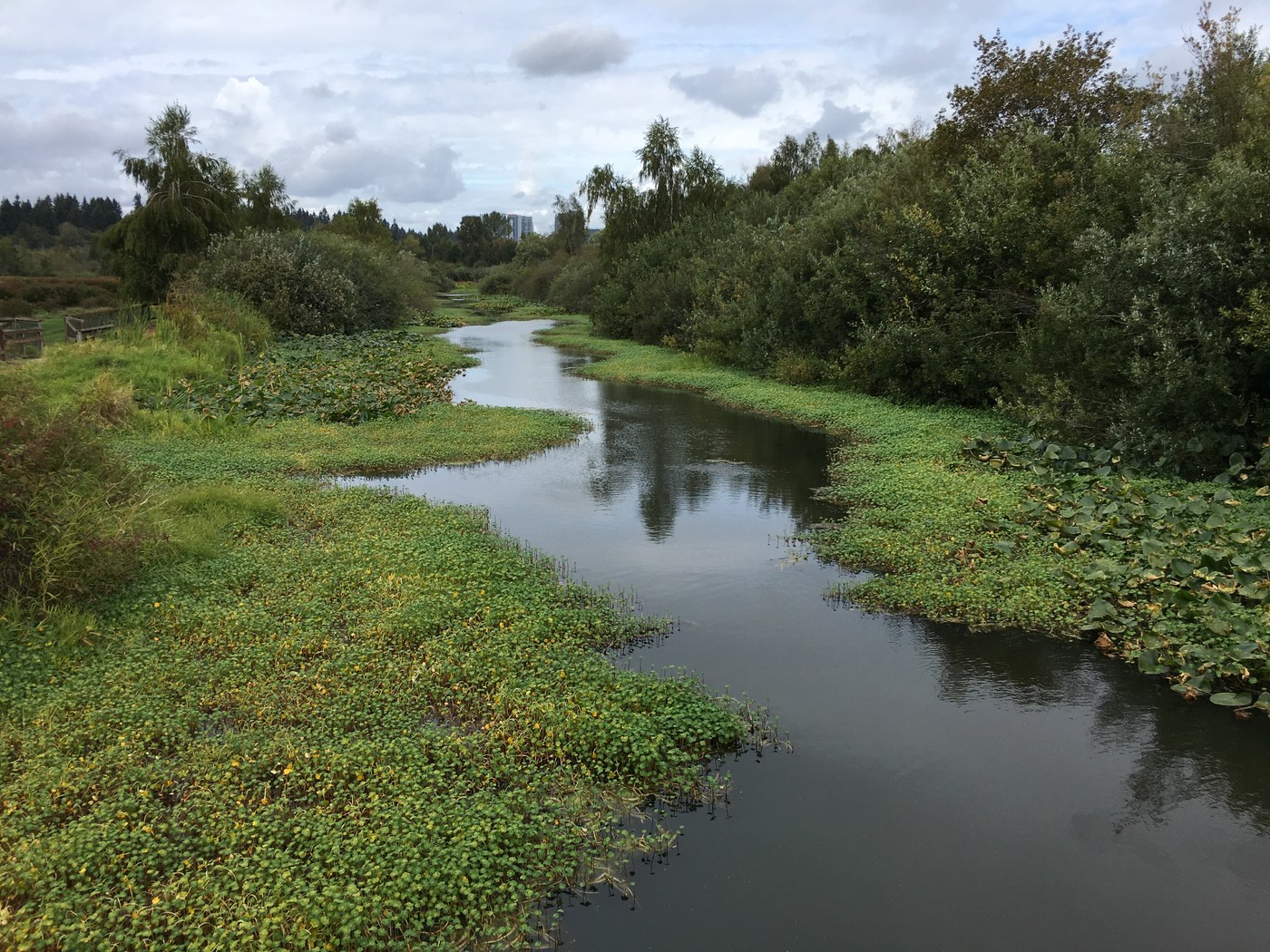 This was our first time on this trail and we entered near the Mercer Slough Environmental Education center. We did see a few parking spots on the other side of the park on Bellevue Way SE near the construction, but we’re past the entrance so we continued around to the other side. We encountered only two other hikers, one runner with his dog, and one maintenance gentleman on a mower along the trail. Except for the constant construction and highway noise in the background, it was quite a private hike.