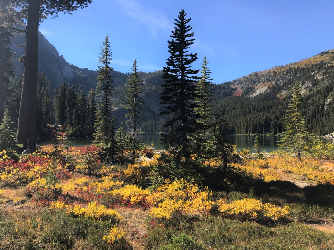 Larch March!!! Schaefer lake is lined with Larches along the ridge surrounding this lake. Will be in prime colors this week or next. Get out there and see them. Limiting factor can be the Chiwawa river crossing. If you wait too long the river gets wider, deeper and colder and makes it difficult to cross at the Horse Ford. You can still try foot logs but they get wet and slippery and dangerous to fall between the log jam. Trail is overgrown near the beginning after the river crossing but you can see the trail. Just wear pants and you will be fine until you are out of the river flood plain area.Definitely worth the hike and as usual in these parts, you will have the trail to yourselves and better yet, if you backpack and camp at the lake totally by yourself. Big lake and peaceful.