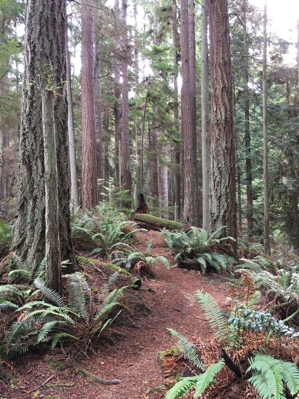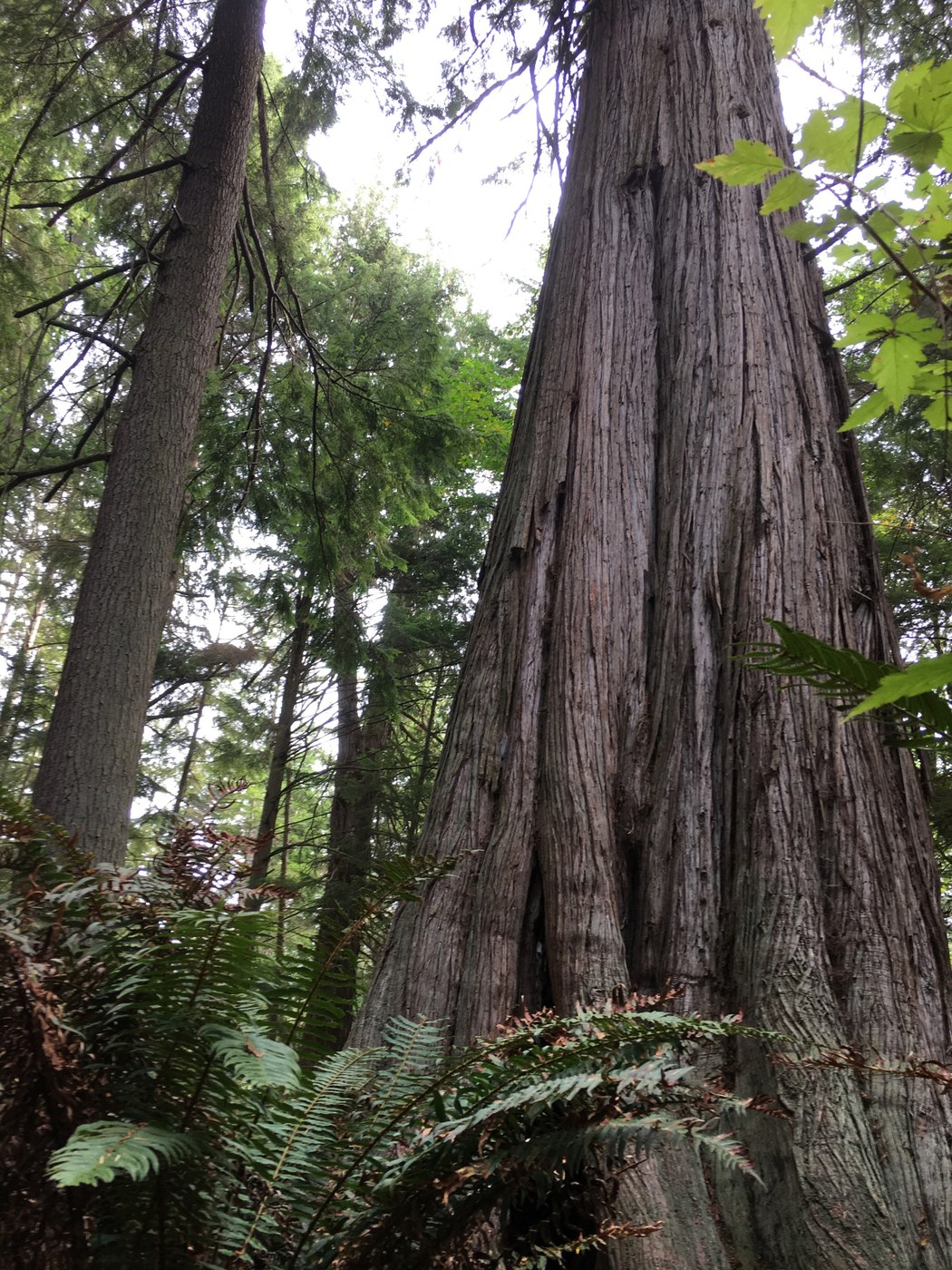 The trails on the east side of Smugglers Cove are really wonderful if you want to experience what an old growth forest might have been like, as this side has a lot of really old and large Douglas Firs and Western Red Cedar. Several of these are 20-25 feet in circumference at shoulder height. In particular the Ancient Cedar is really big, but you can't get close to it because they have it blockaded to protect the root system. If you hike the east side, choose the Wilbert Trail vs the Ridge trail as the Wilbert Trail is more scenic.
