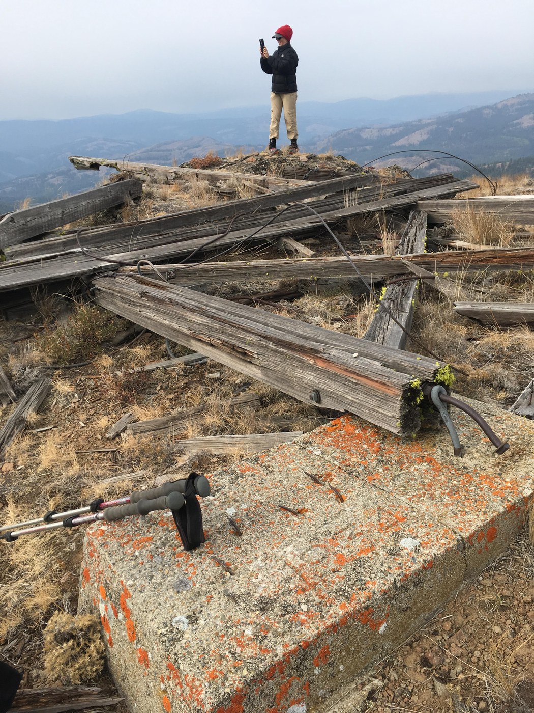 We camped at Bear Pot, named for bears who would hang out in the boggy pond near by. That's also the trailhead. We made it past the cabin, missed the mine adit mentioned in the guidebook, and finally the very easy scramble to the summit. It's strange there is no evidence of trail to the lookout site, with some lumber, eyelets and concrete blocks the only human markings on the landscape a couple tenths of a mile above the trail. We found the mine adit on the way back, an easier direction to notice it below the trail, but ya gotta look sharp.