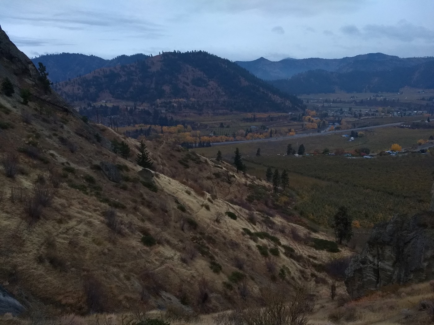 The views of the valley are great pretty much the whole time, complete with vineyards and hillsides dotted with yellow and orange aspens among the green evergreens. Sonically, Peshastin was the polar opposite of my other hikes this trip – where most of my locations this time were totally silent, this place was loud; it’s just a few hundred yards off Highway 2.