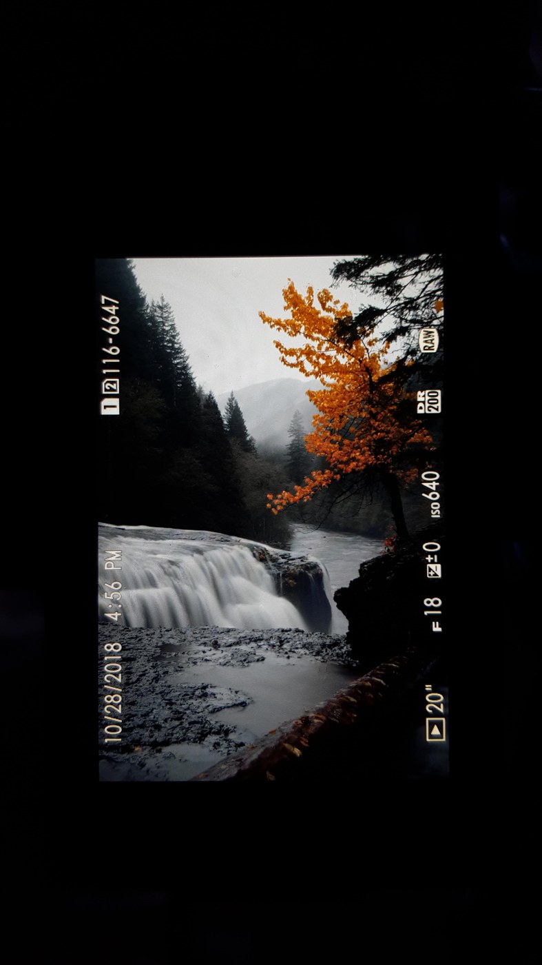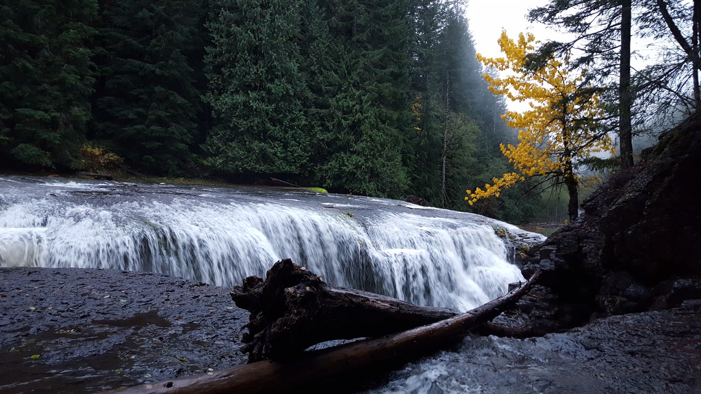 The tree above Lower Lewis is yellow now. We scrambled down to the shore and walked in the river (COLD!!) to take photos of the falls. Fog, rainbow, fall color, and beautiful swirling foam appeared multiple times.