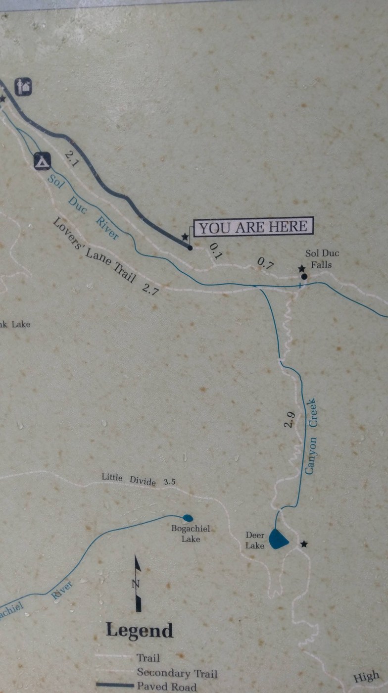 I hiked a little on Lover's Lane Loop. This trail is on your right at the fork after you pass the Sol Duc Falls Bridge. The left leads you up to the ridge. The Lover's Lane Trail will take you along the Sol Duc River.