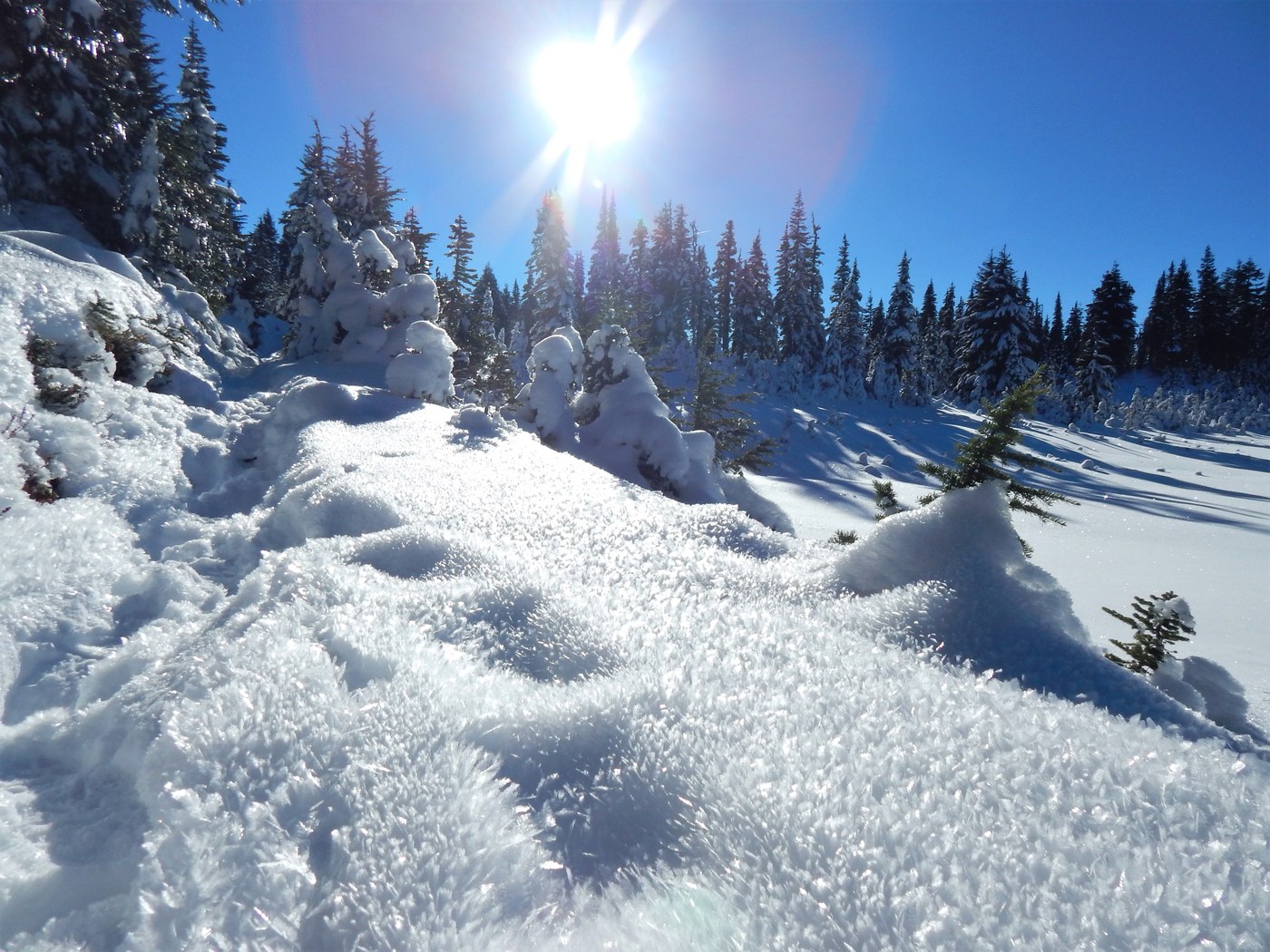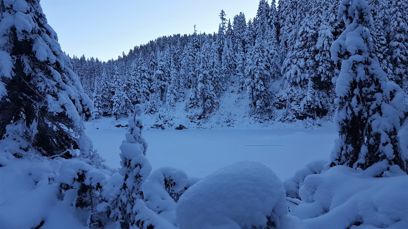 Twin Lake and Coplay Lake were both frozen over but Summit Lake was only partially frozen. Snow in places were like tiny razor thin shards of ice. very cool looking.