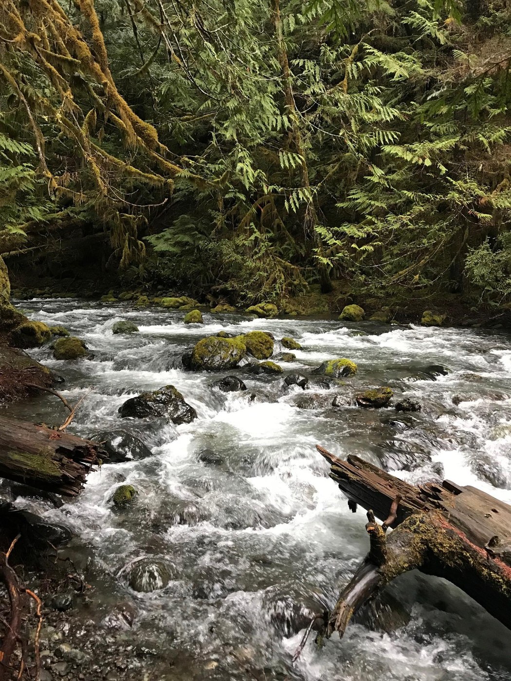 The road and trail were snow free and in good condition. A few stream crossings required getting my feet slightly wet (but my boots kept my socks dry.) My husband with a lot longer legs was usually able to stay out of the water.